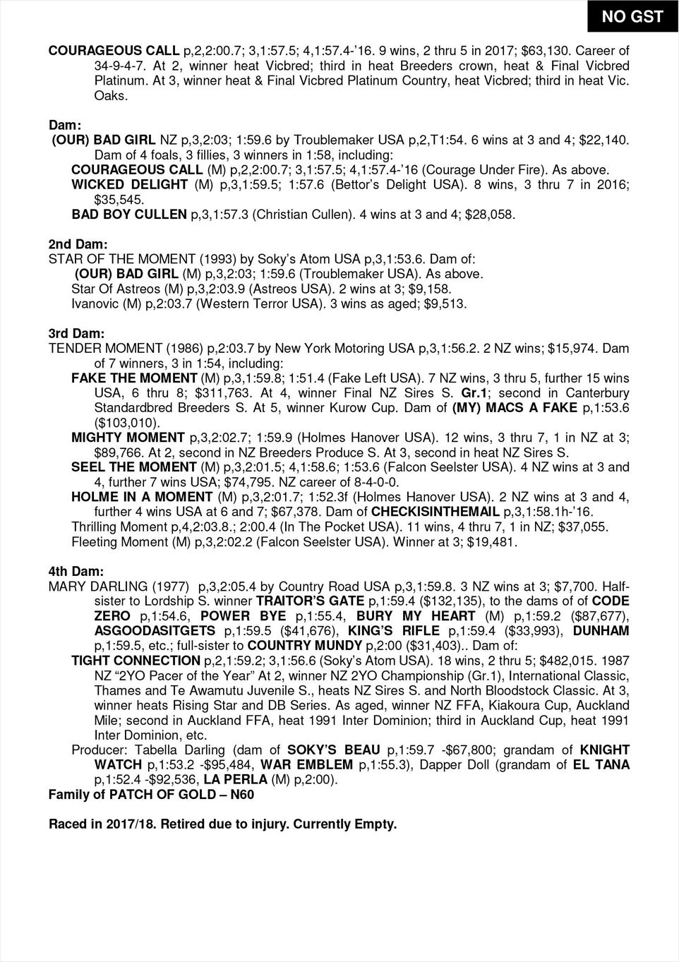 | Dam: | Our Bad Girl NZ |