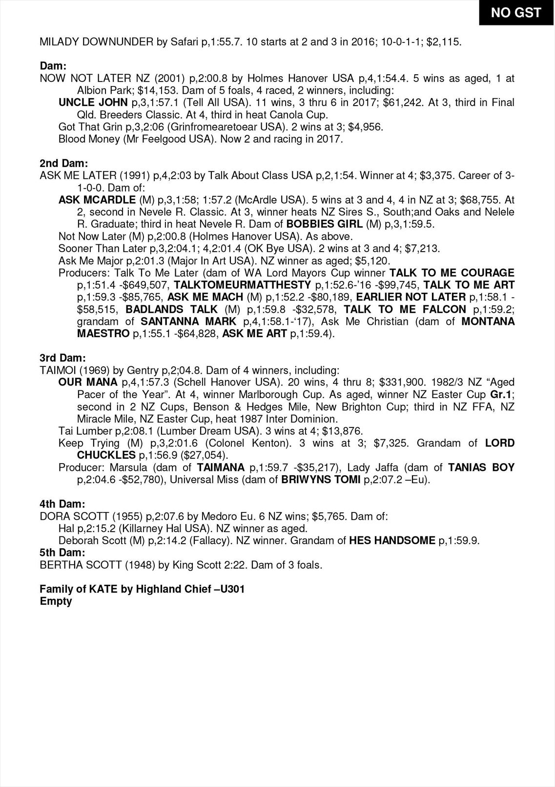 | Dam: | Now Not Later NZ |
