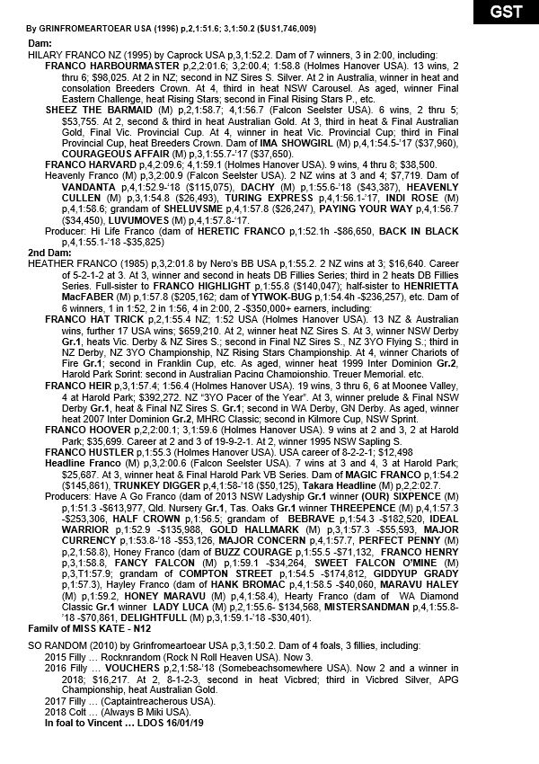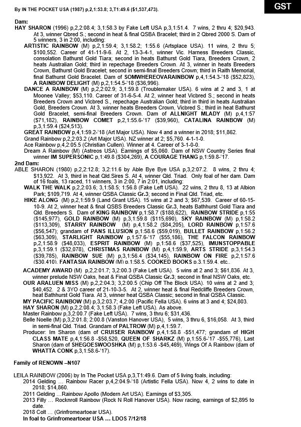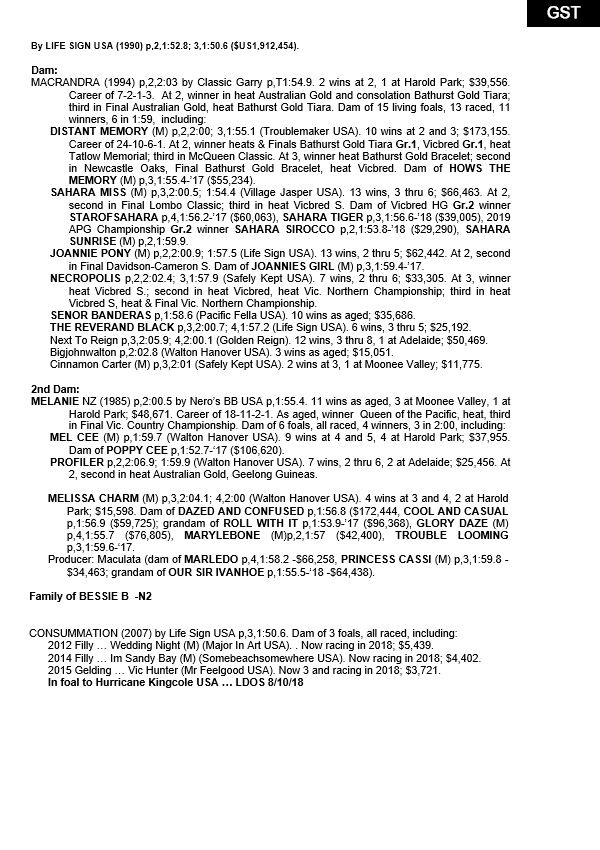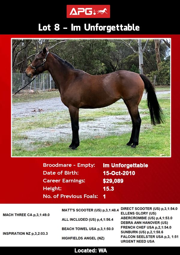 | H | Im Unforgettable NZ (Unforgettable) | Mach Three CA | Inspiration NZ | Estate of Harry Capararao |