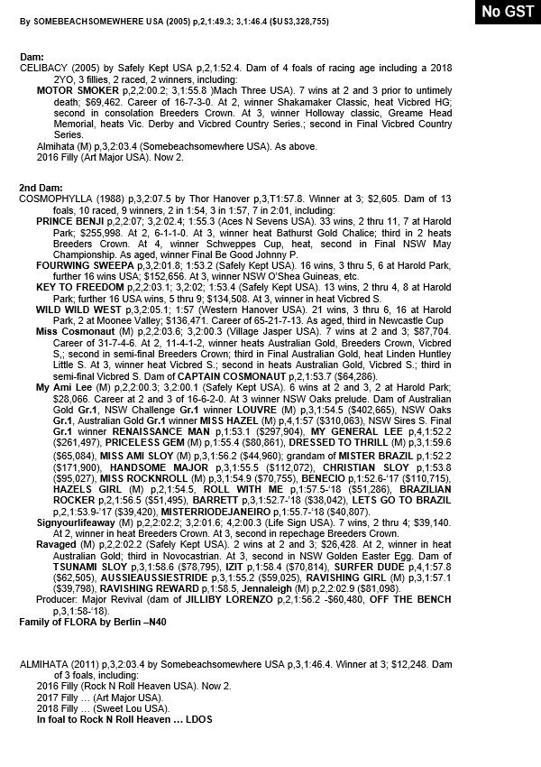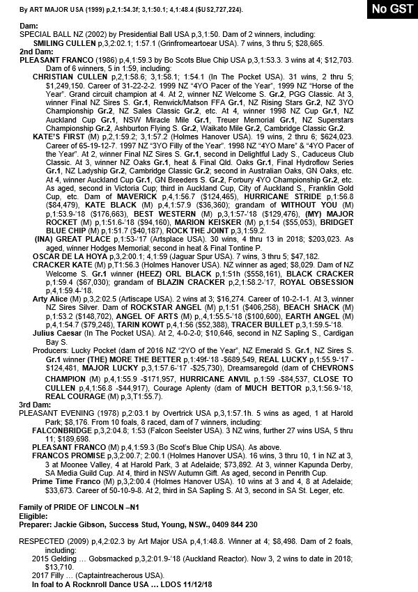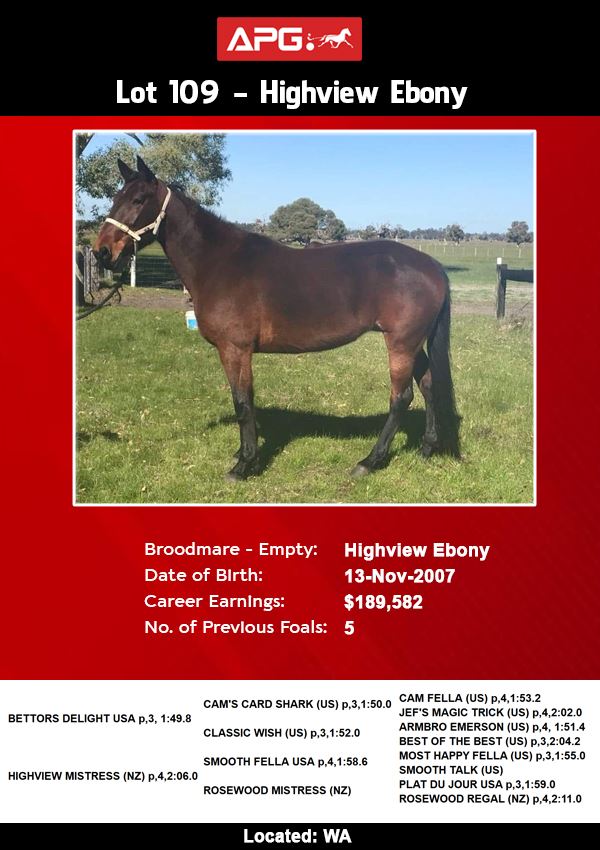| Highview Ebony | Bettors Delight USA | Highview Mistress | KTC Bloodstock as agent |