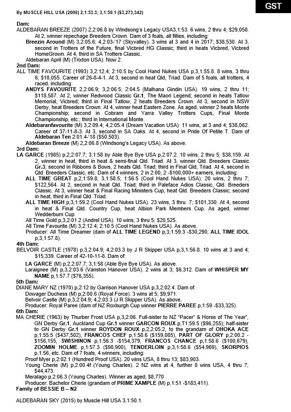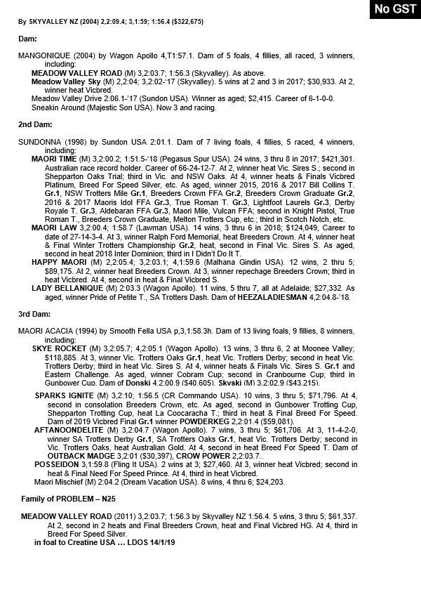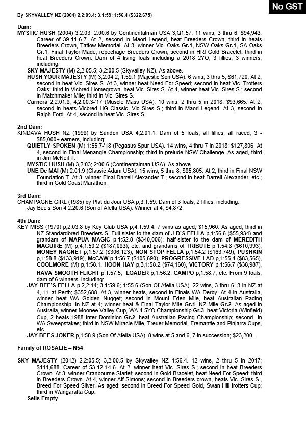 | Sky Majesty | Skyvalley NZ | Mystic Hush | Taranto, Merola & Godino |