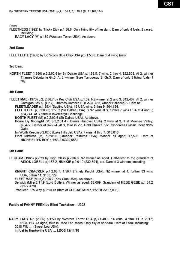 | Filly | Lady Gar | American Ideal USA | Im Elsa NZ |