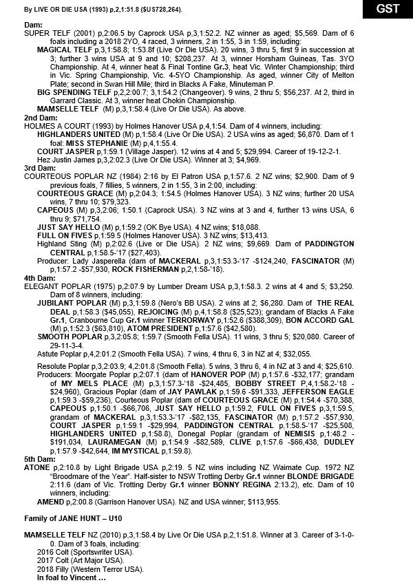 (+) | Typhoon Tan NZ | Live Or Die USA | Belle Mystique NZ | Estate of Harry Capararo |