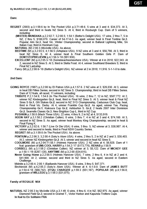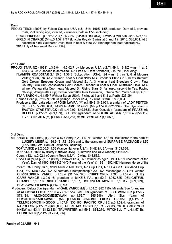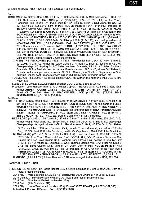 | Filly | Im Princess Bella | A Rocknroll Dance USA | Missy Elliott NZ | Regal Farm |
