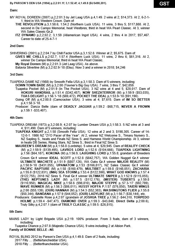 | Mare | Royal Tribute | Allamerican Ingot USA | Royal Tour | Royalstar Pty Ltd |