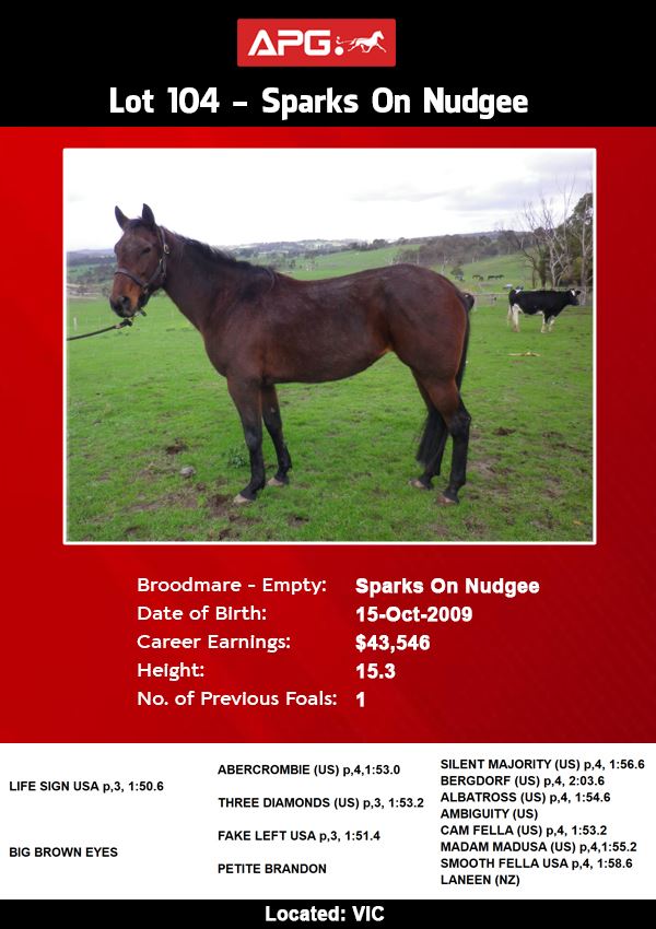 | Sparks On Nudgee | Life Sign USA | Big Brown Eyes | Homestaed Farm |