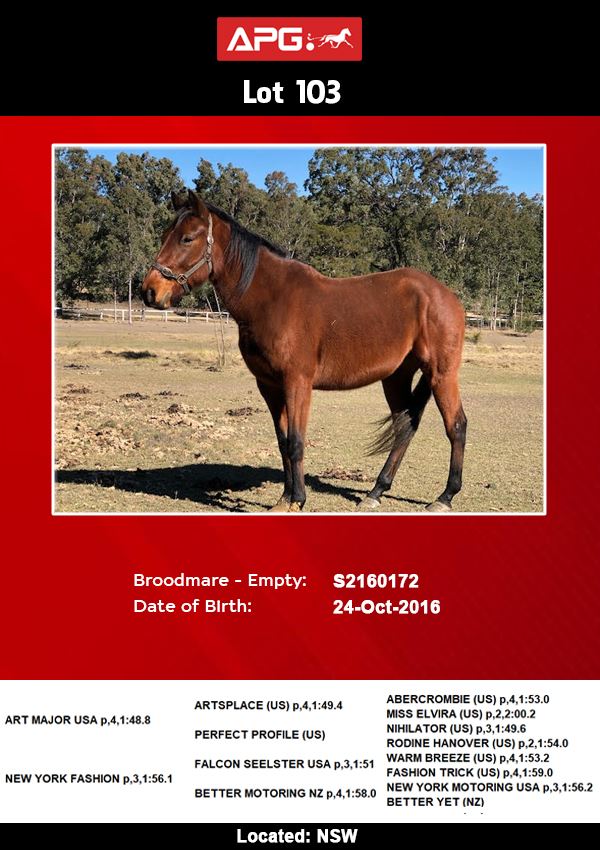 | 103 | Broodmare | Bay |