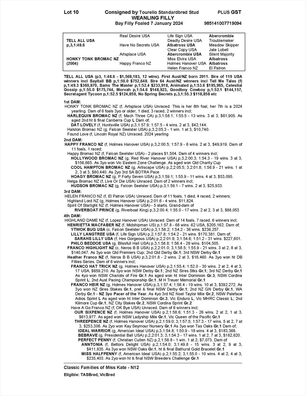 | Dam: | Honky Tonk Bromac NZ |