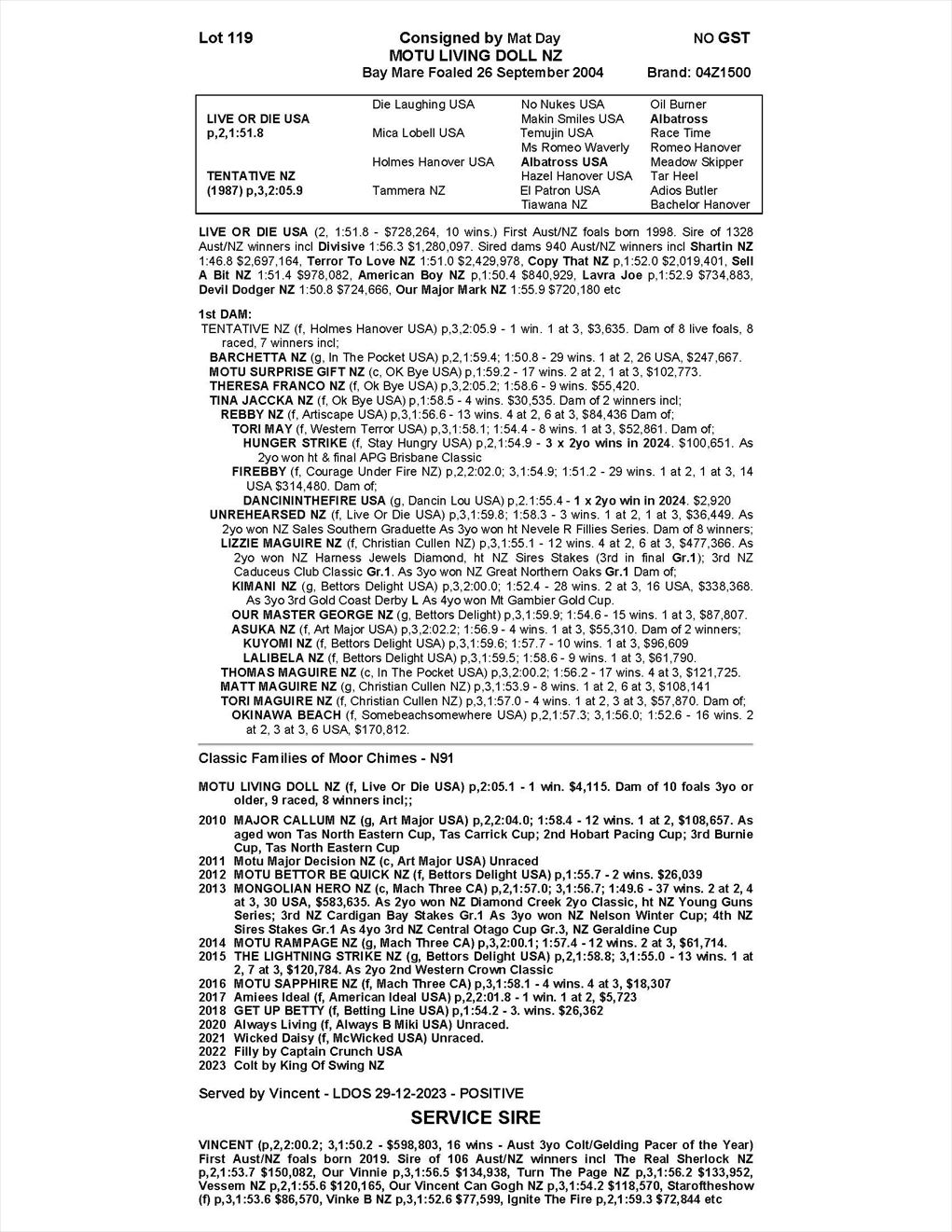 | Covering sire: | Vincent |