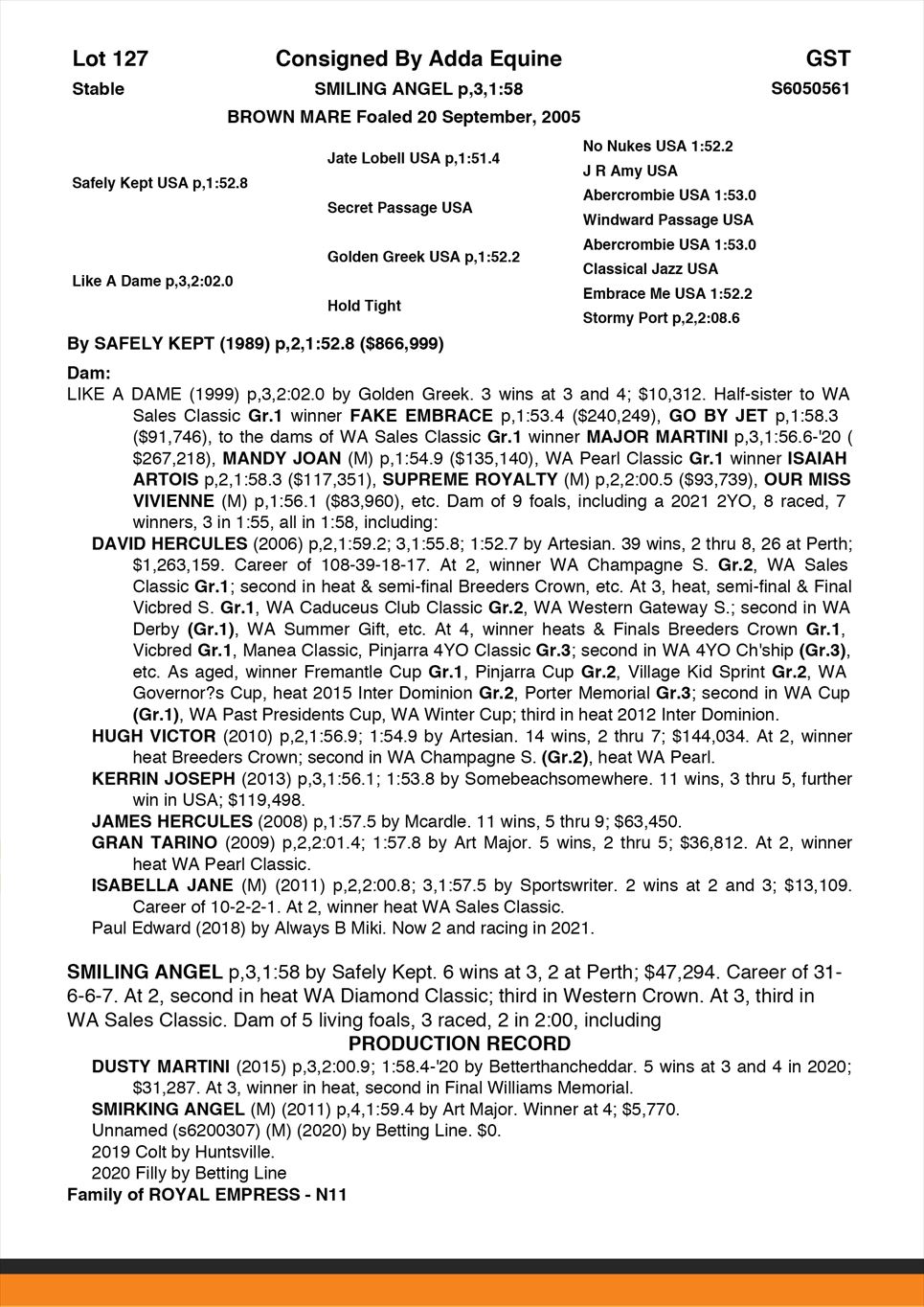 | Sire: | Safely Kept USA |