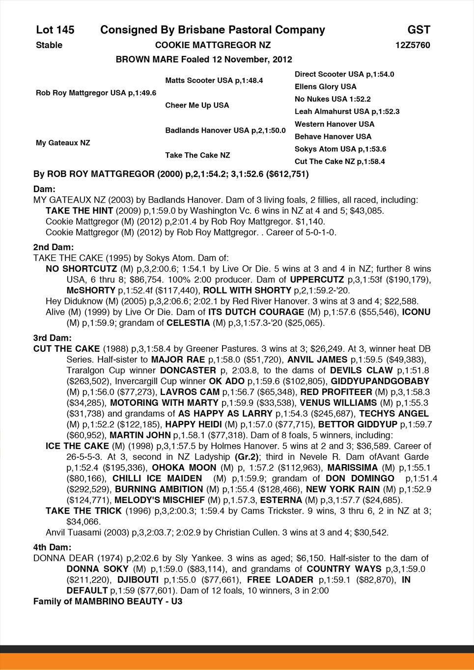| Dam: | My Gateaux NZ |
