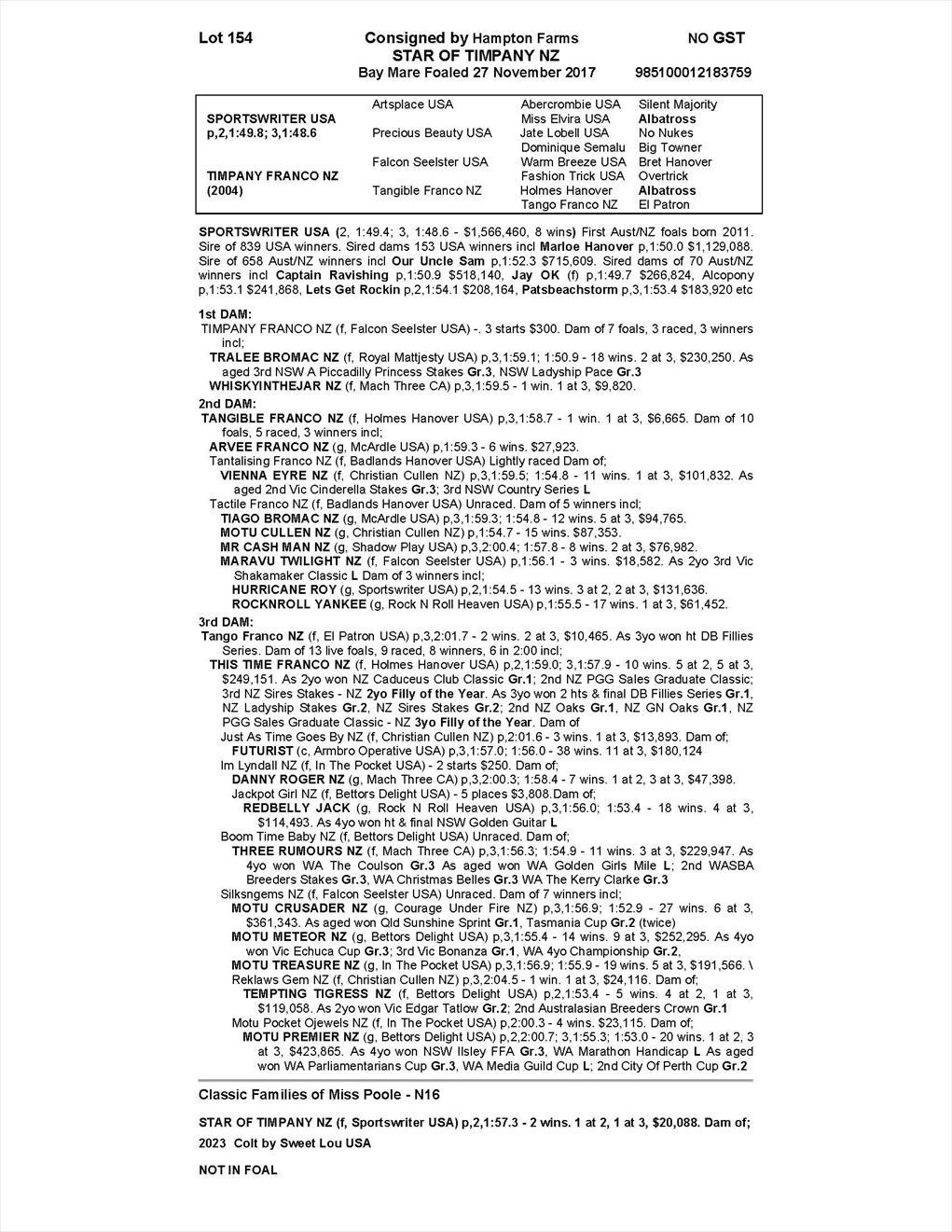 | Dam: | Timpany Franco (NZ) |