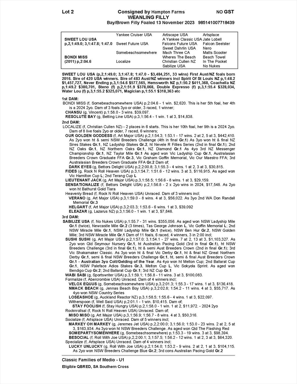 | Sire: | Sweet Lou USA |