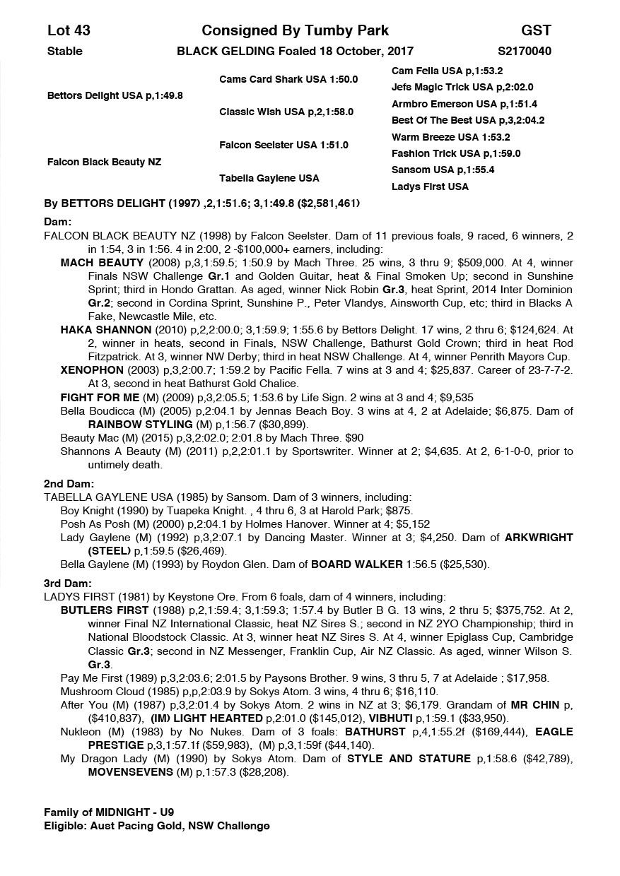 Bettors Delight USA / Falcon Black Beauty NZ