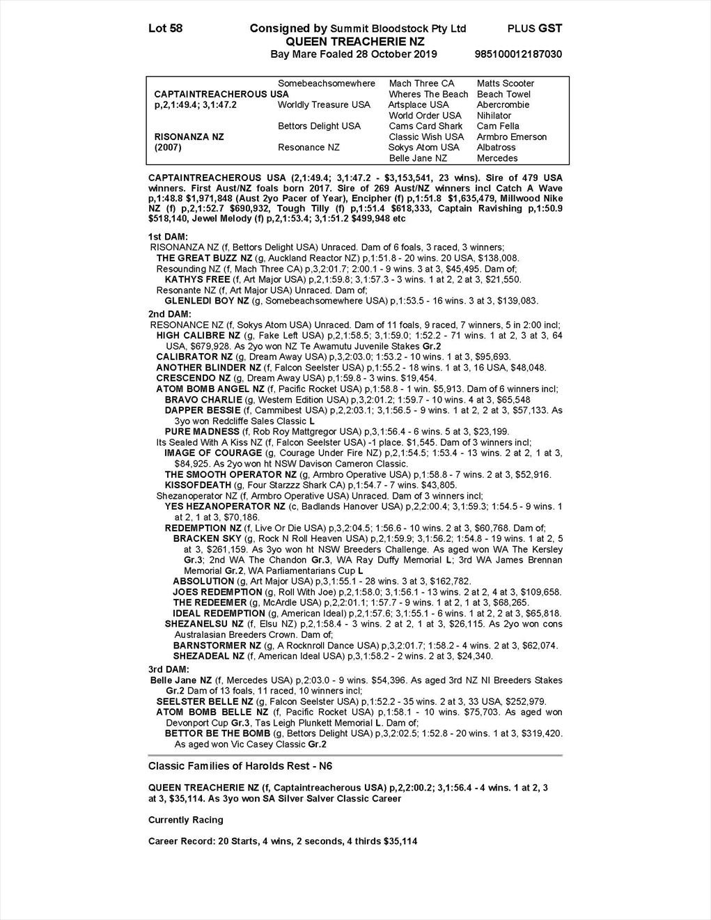 | Sire: | Captaintreacherous (US) |