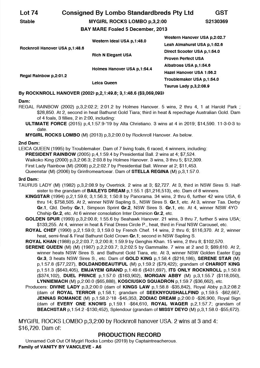 | Sire: | Rocknroll Hanover USA |