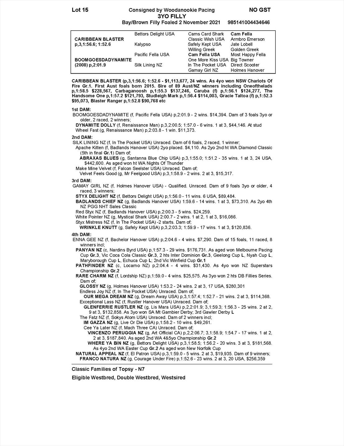 | Filly | Unnamed | Caribbean Blaster | Boomgoesdadynamite | Woodanookie Pacing | WA |