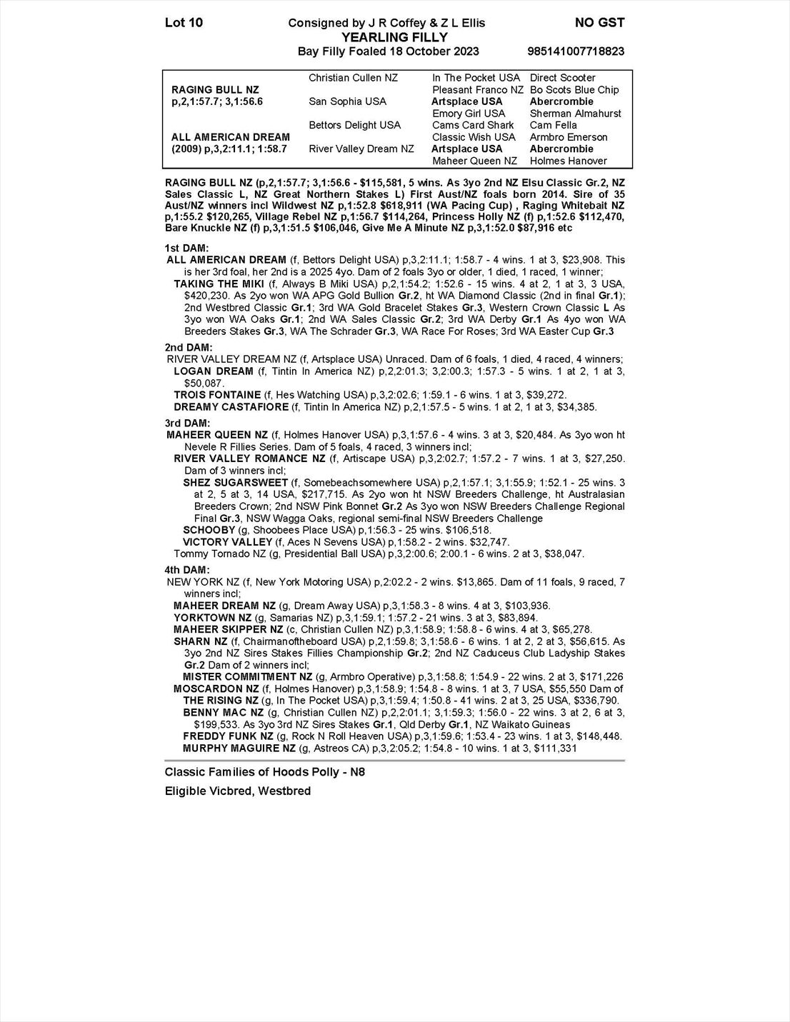 | Filly | Unnamed | Raging Bull NZ | All American Dream | J R Coffey & Z L Ellis | WA |