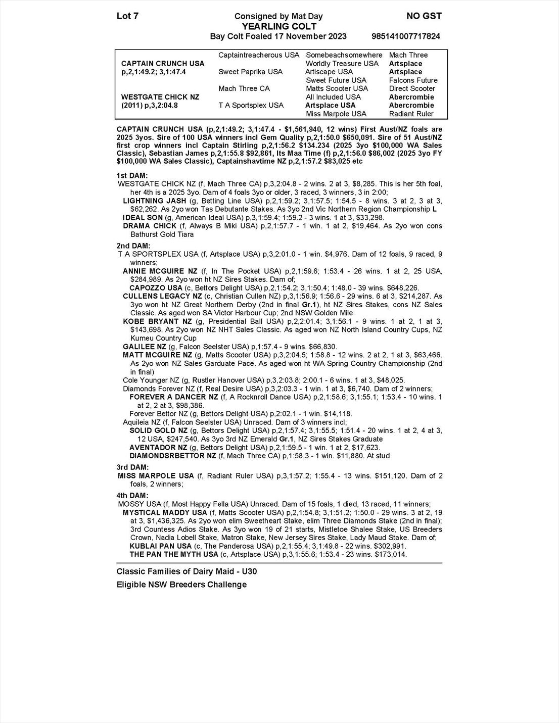 | Colt | Unnamed | Captain Crunch USA | Westgate Chick NZ | Matt Day | NSW |