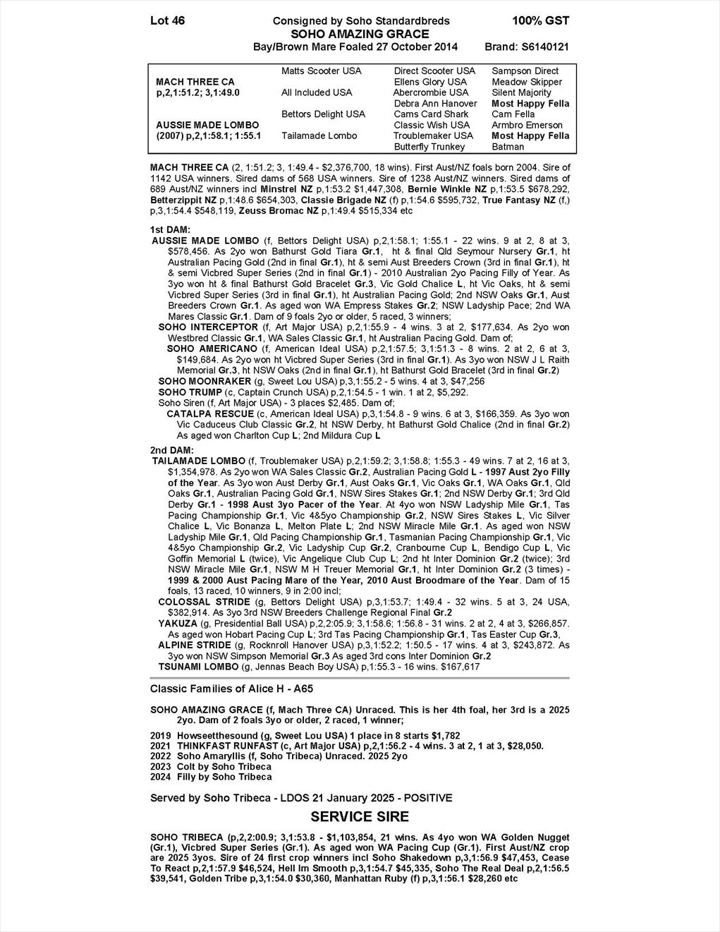 | Filly | Soho Amaryllis | Soho Tribeca | Soho Amazing Grace | Soho Standardbreds | VIC | Tourello Standardbred Stud P/L | $1,250 |
