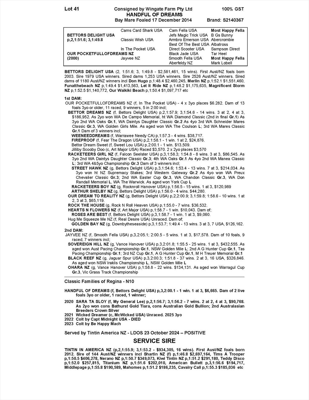 | Mare(+) | Diamond Inthe Dust | Grinfromeartoear USA | Shes A Cool Lady | Wayne Schulze | VIC |
