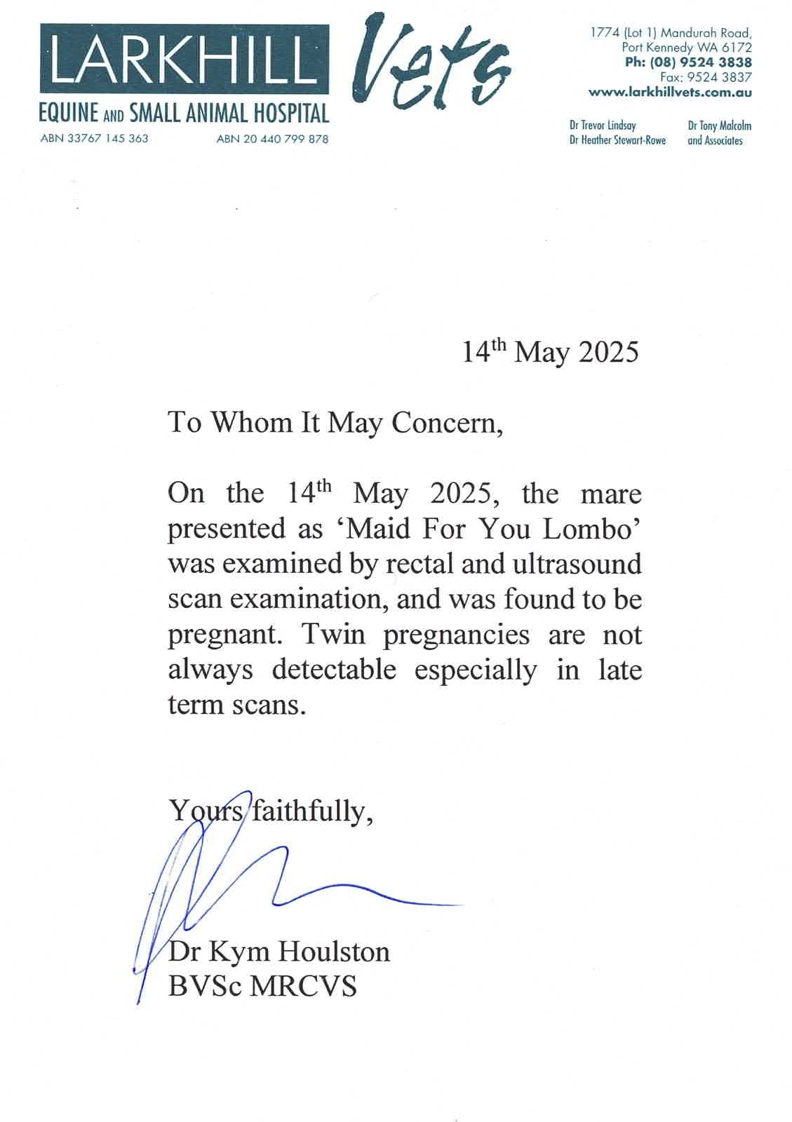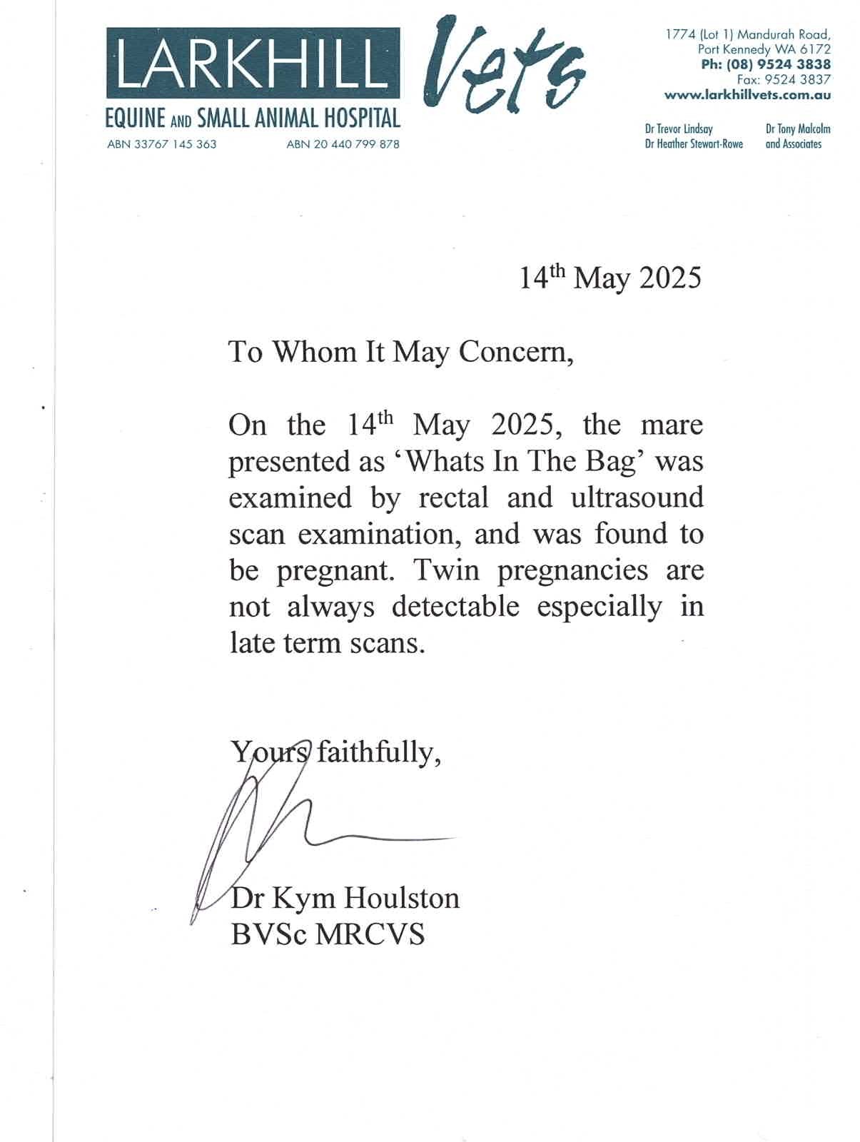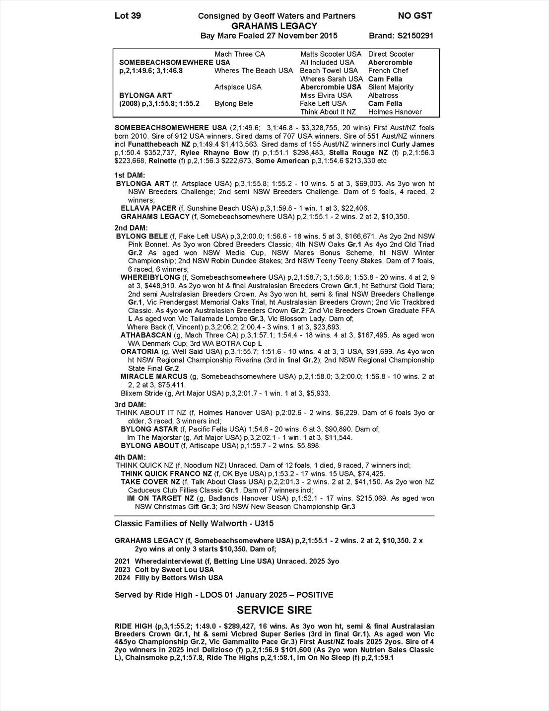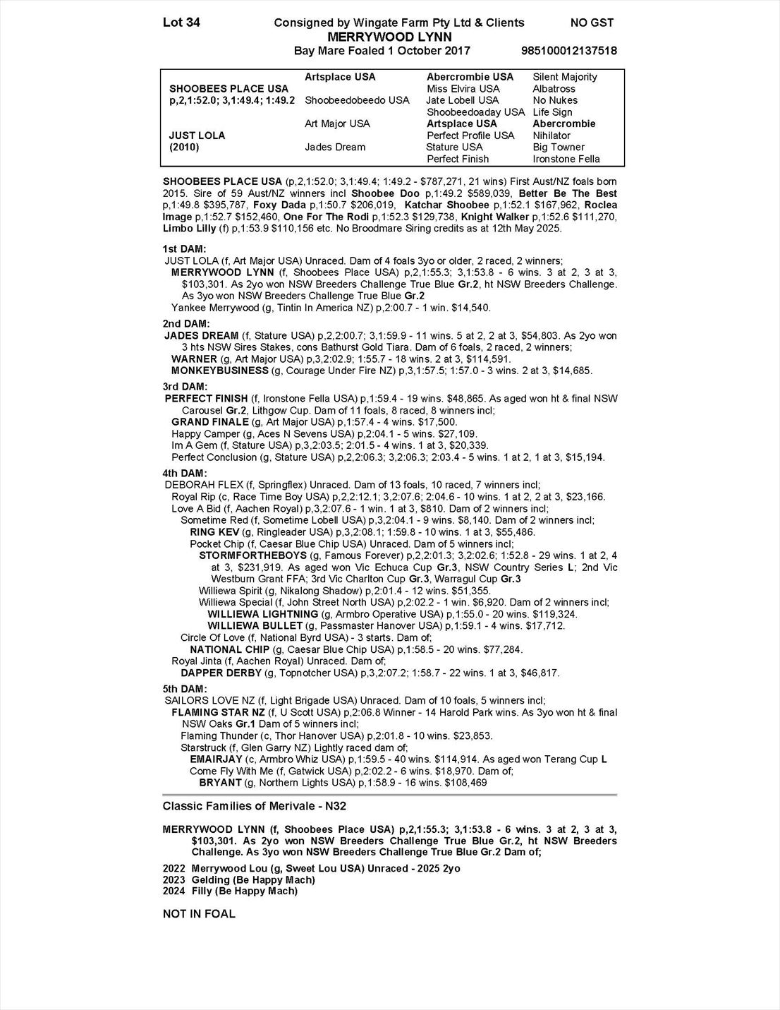 | Mare | Merrywood Lynn | Shoobees Place USA | Just Lola | Wingate Farm Pty Ltd & Clients | NSW |