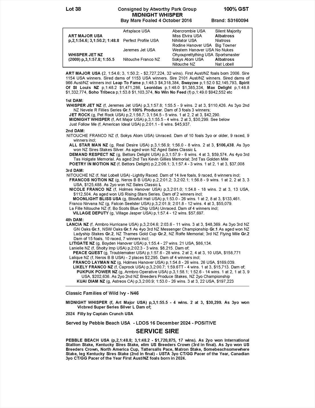 | Mare(+) | Midnight Whisper | Art Major USA | Whisper Jet NZ | Atworthy Park Group | NSW |