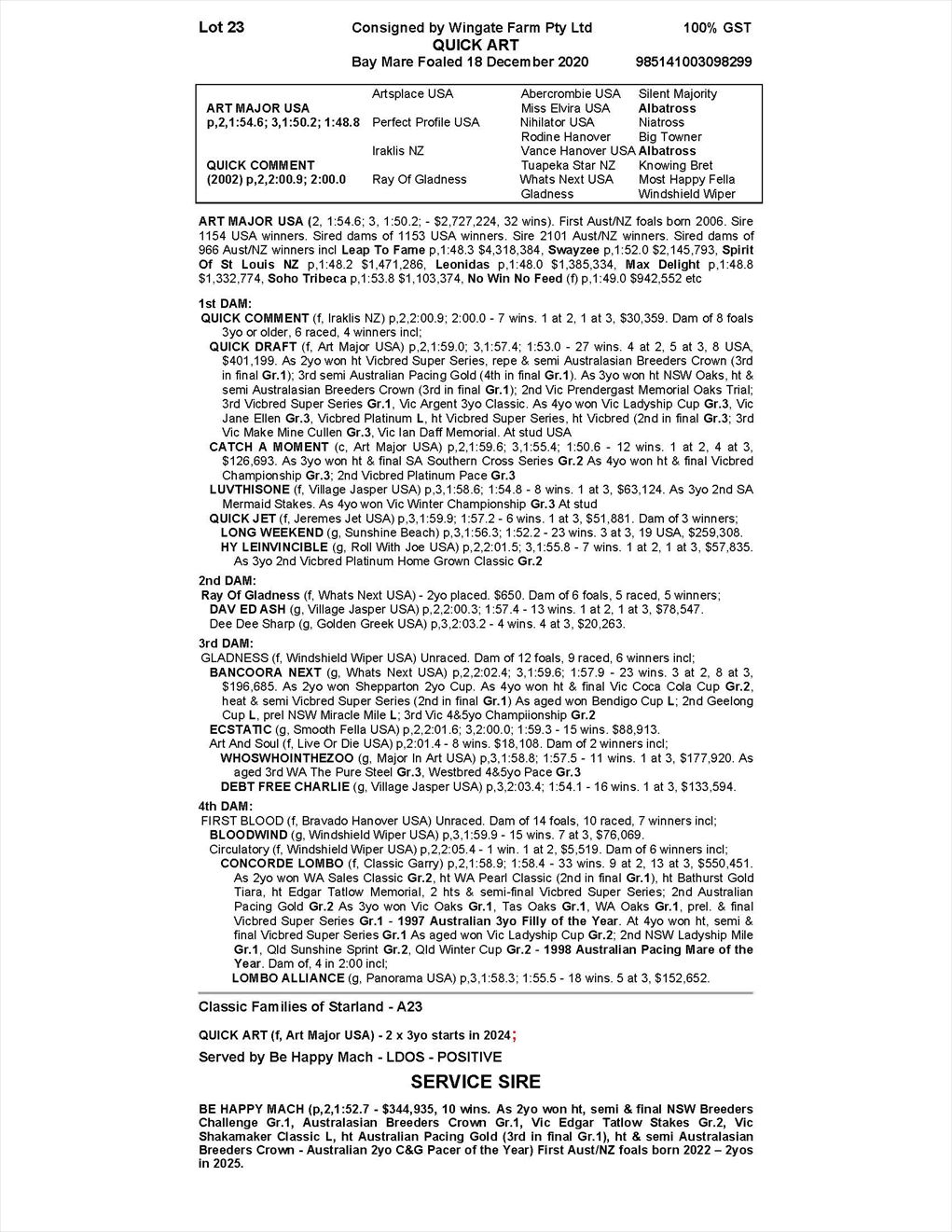 | Mare(+) | Dolly Mach Lombo | Mach Three CA | Dolly Bird Lombo | Monarch Farm | QLD |