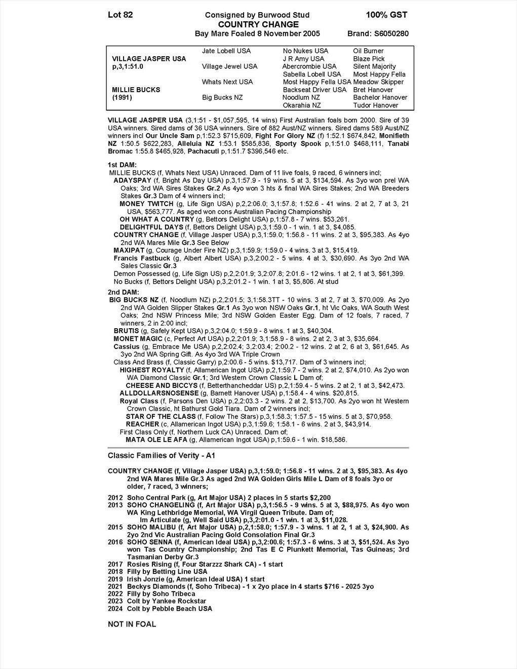 | Mare | Country Change | Village Jasper USA | Millie Bucks | Burwood Stud | QLD |