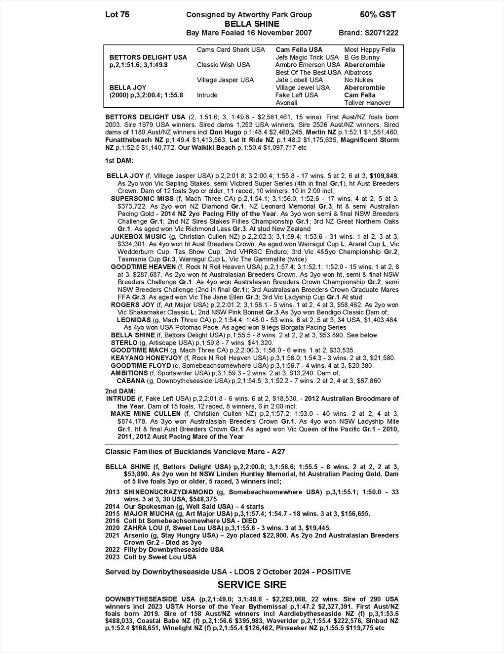 | Mare(+) | Bella Shine | Bettors Delight USA | Bella Joy | Atworthy Park Group | NSW |