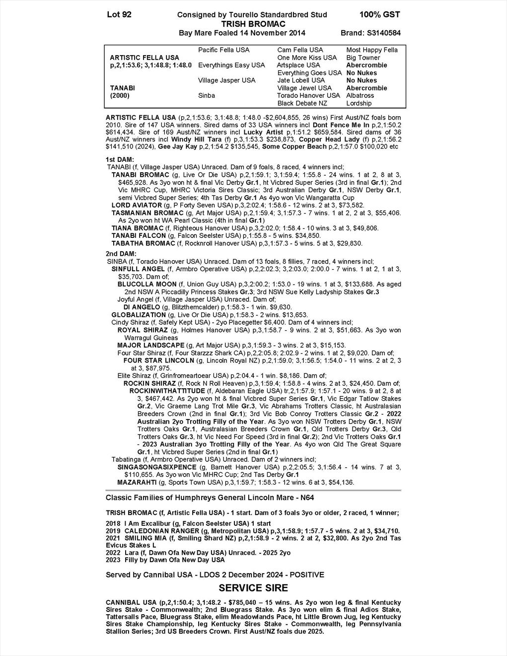 | Filly | Unnamed | Lincoln Royal NZ | Dynamic Cat | Tourello Standardbred Stud | TAS |
