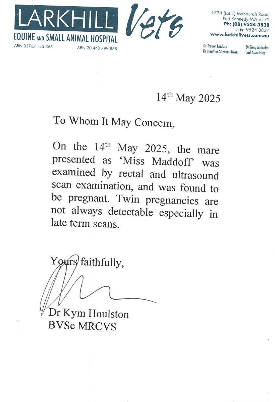 | Mare | Bella Ragazza | Art Major USA | Mio Christisimo | Walmsley Developments Pty Ltd | WA |