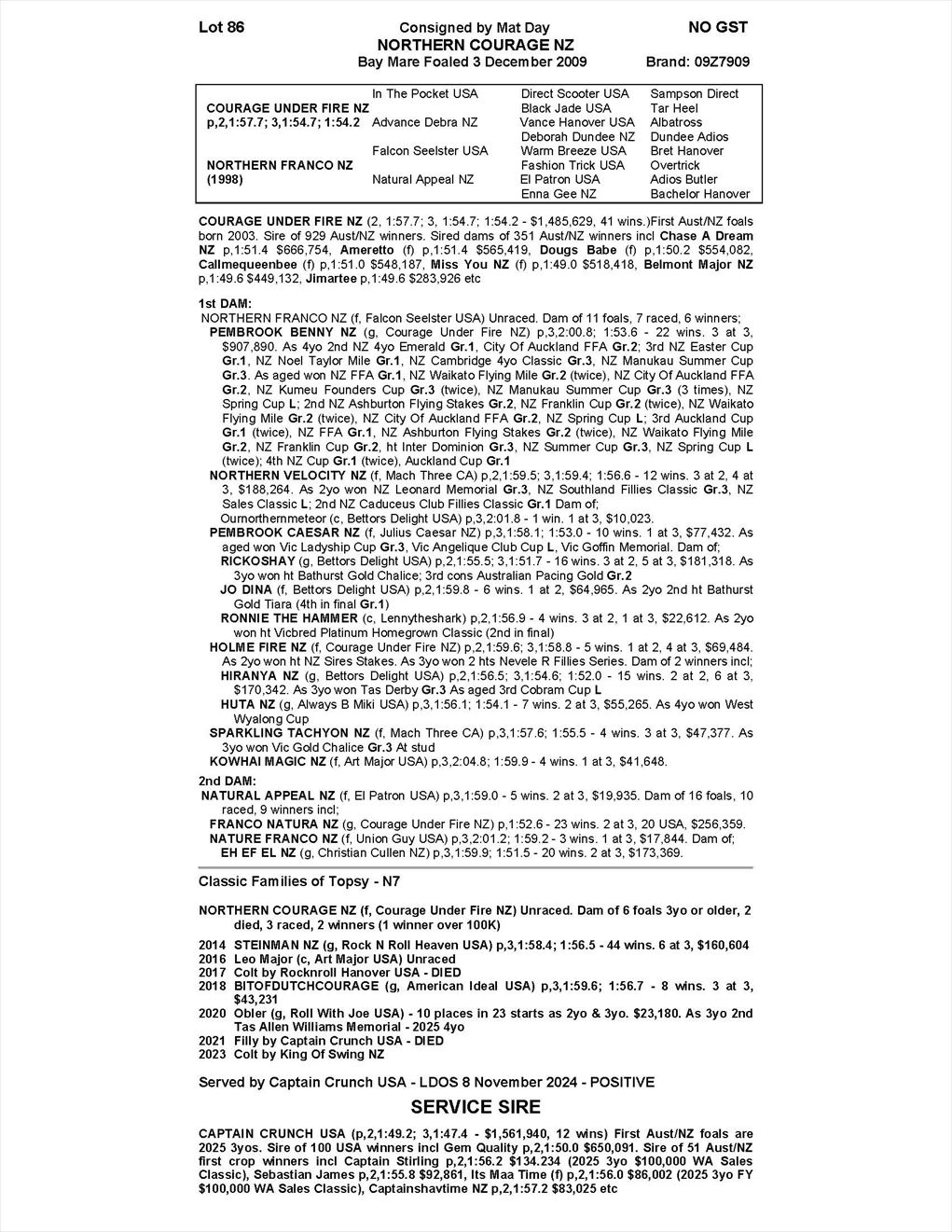 | Mare(+) | Northern Courage NZ | Courage Under Fire NZ | Northern Franco (NZ) | Matt Day | NSW |