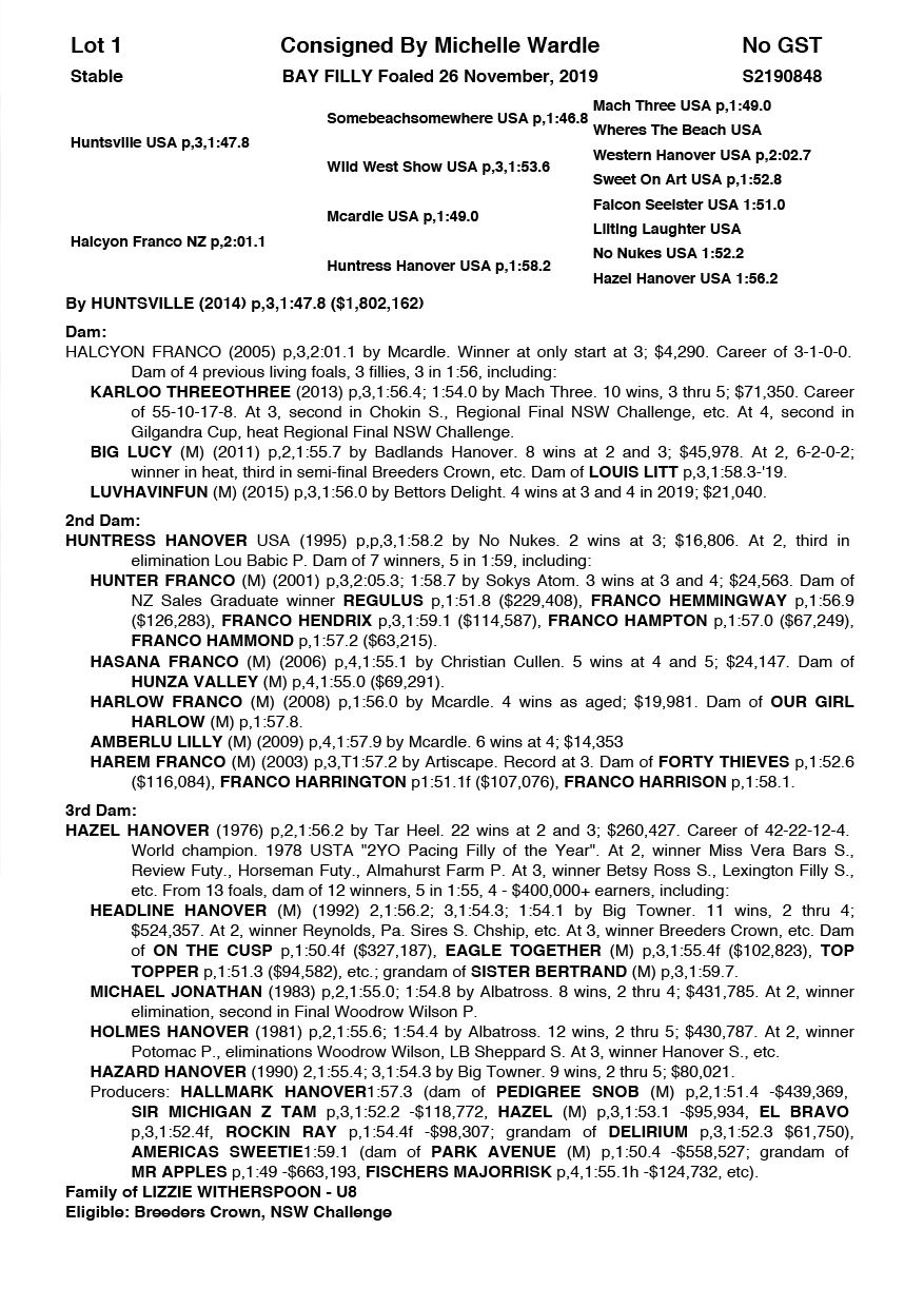 | Filly | Skadi | Huntsville USA | Halcyon Franco NZ | Michelle Wardle | NSW |