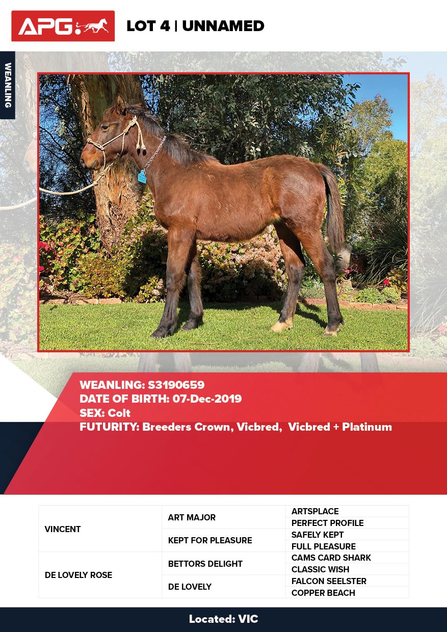 | Colt | Staroftheshow | Vincent | De Lovely Rose NZ | DNR Properties | VIC |