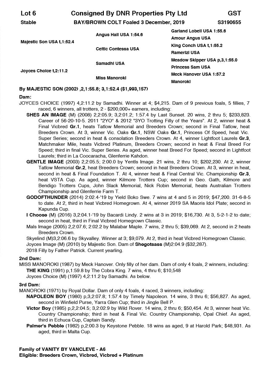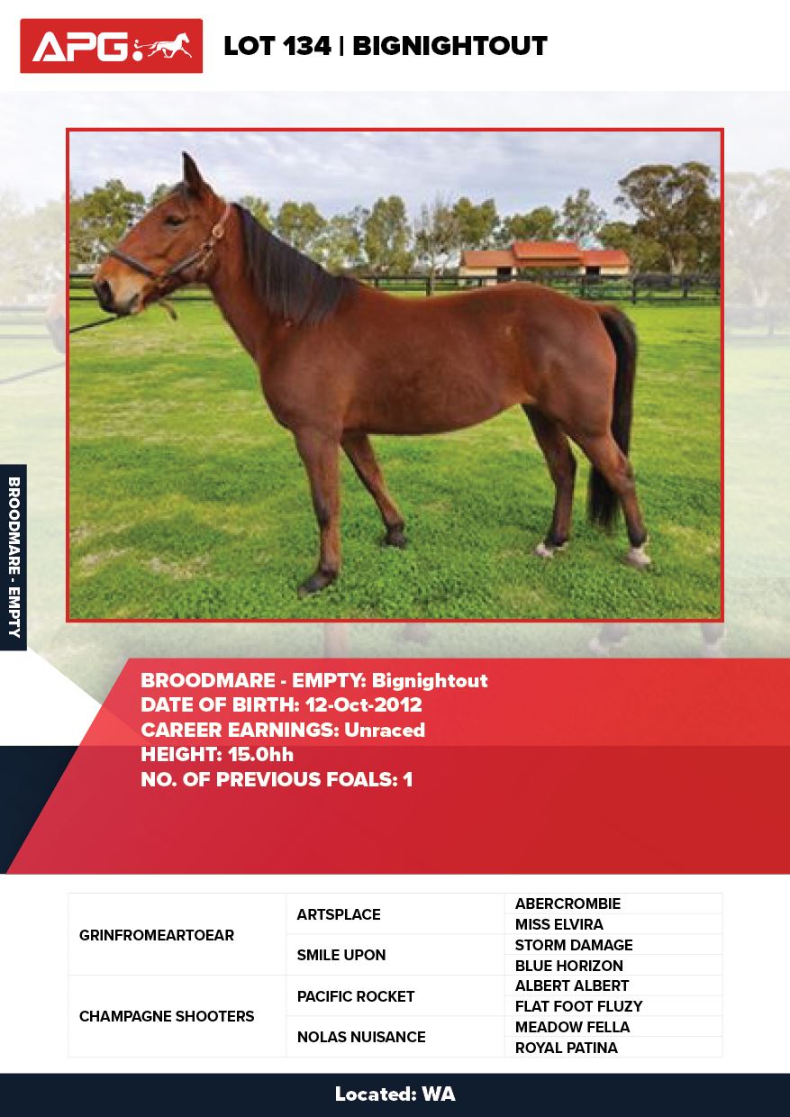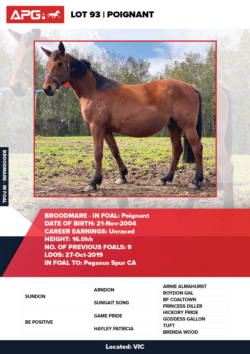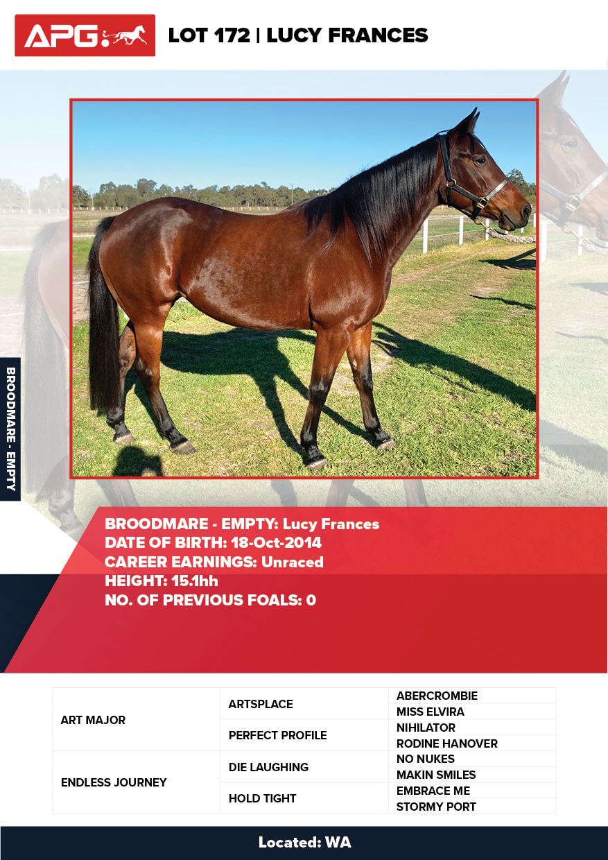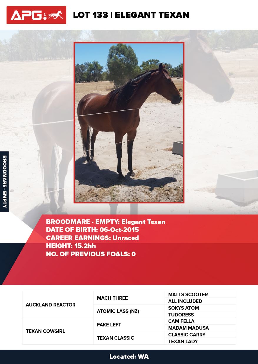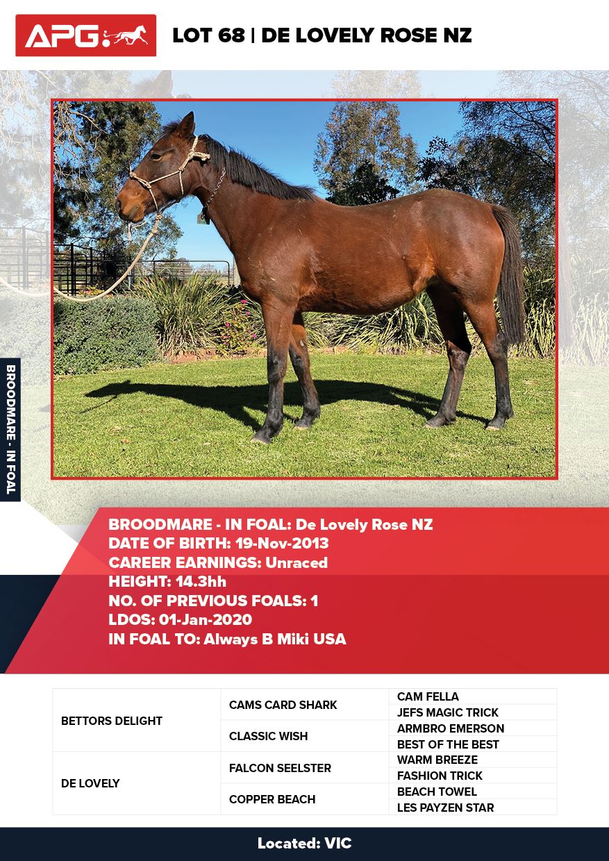 | Mare | Joyces Image | Majestic Son CA | Joyces Choice | Trump Bloodstock | QLD | Youngson | $1,500 |