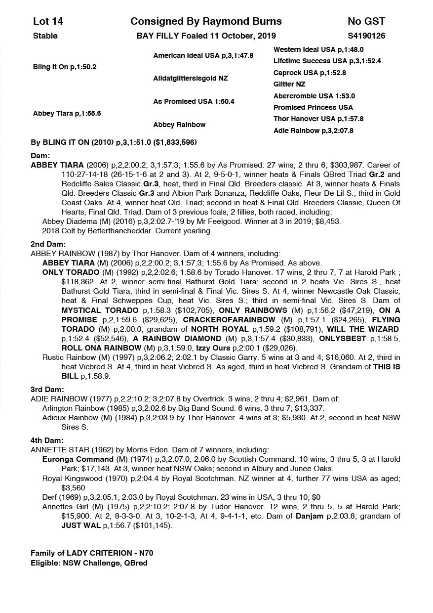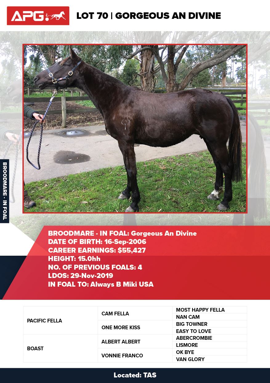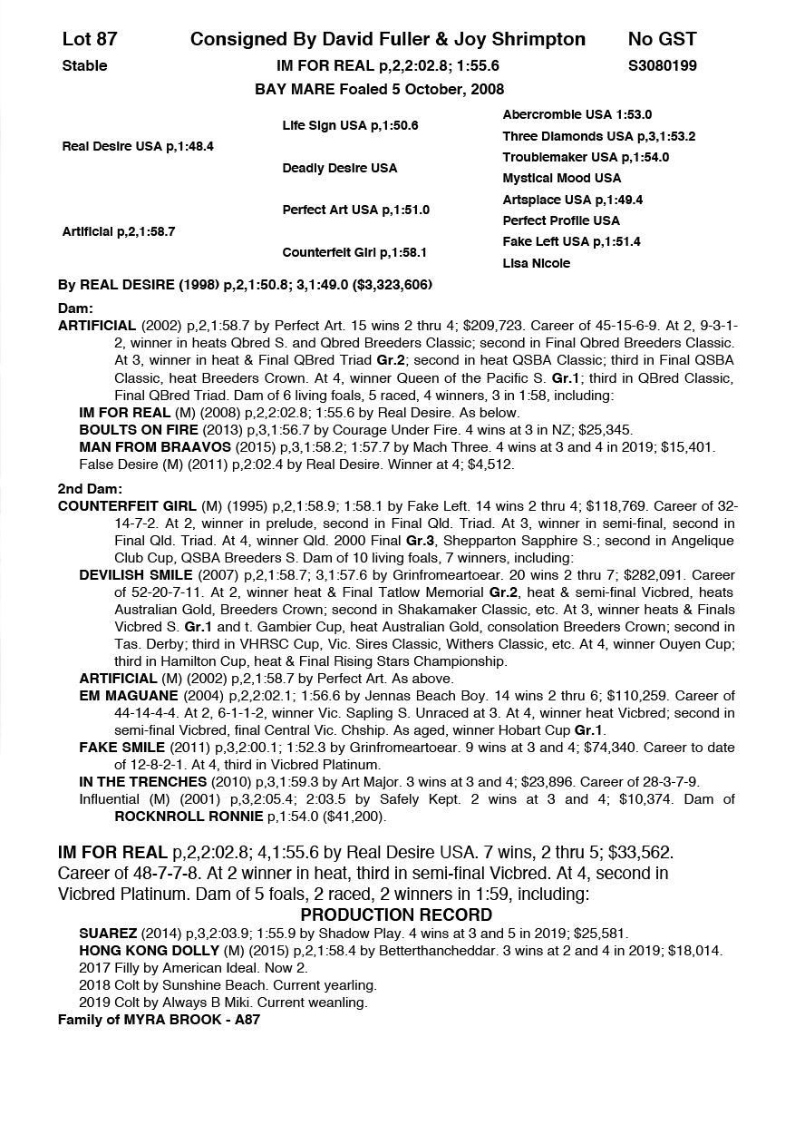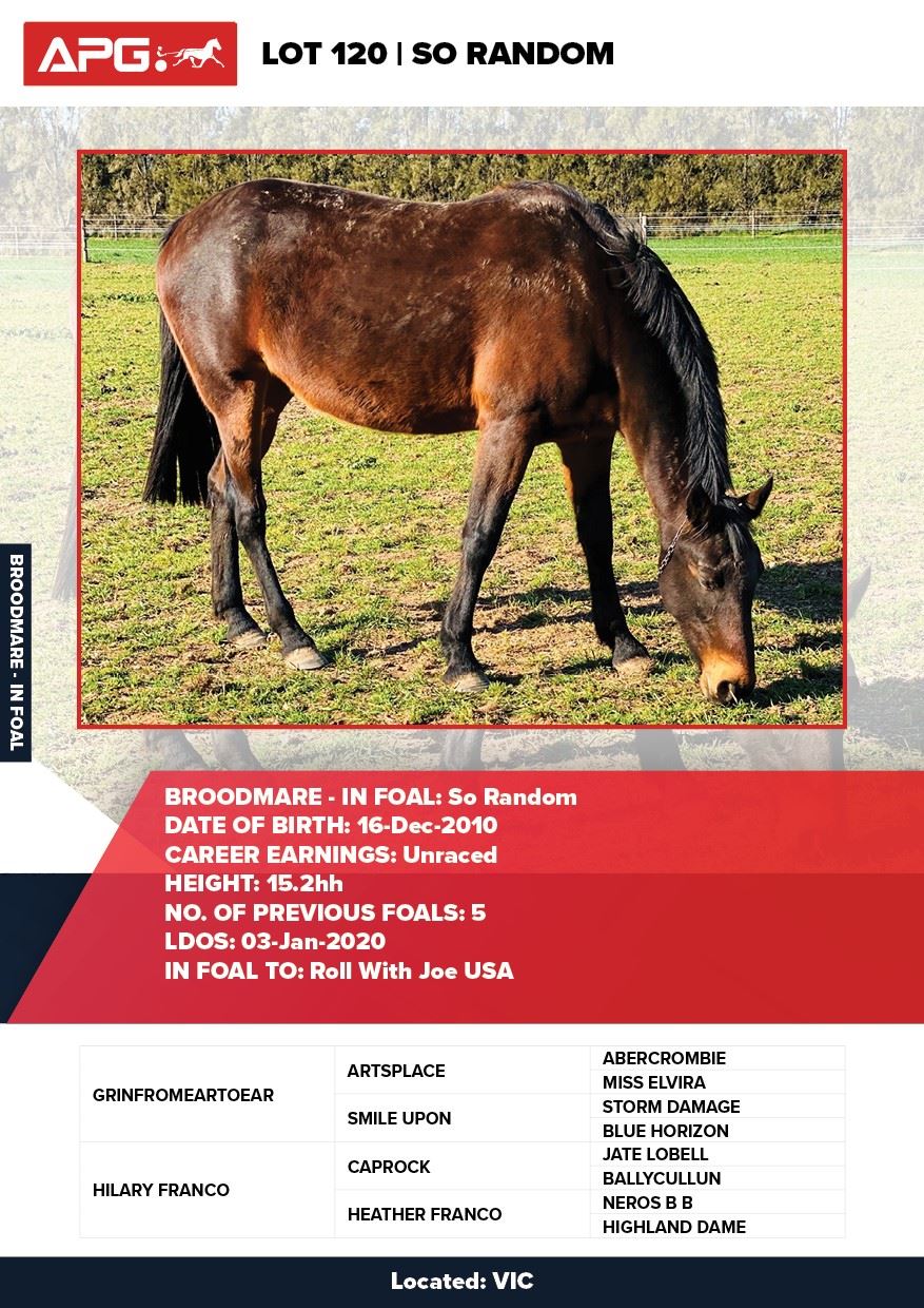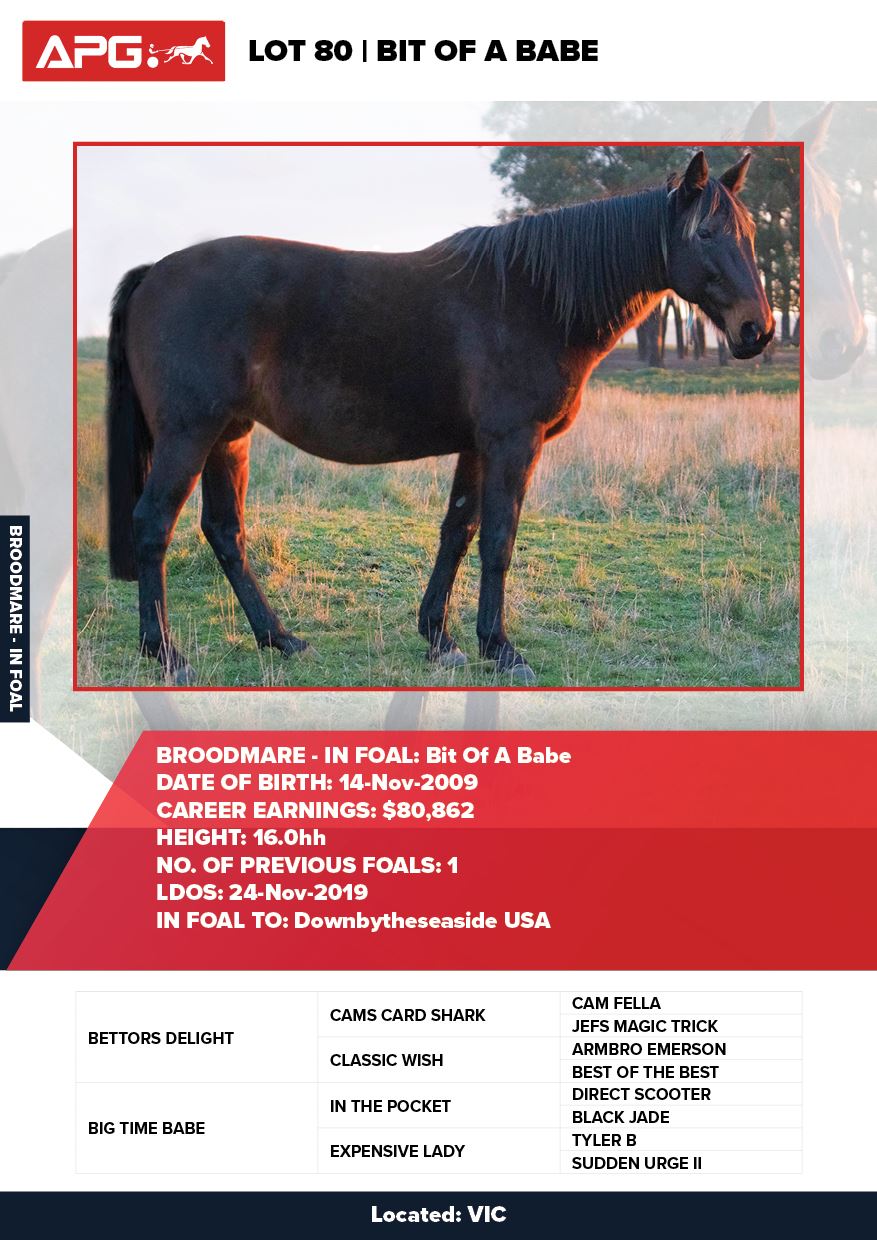 | Mare | Joyces Image | Majestic Son CA | Joyces Choice | Trump Bloodstock | QLD | Youngson | $1,500 |
