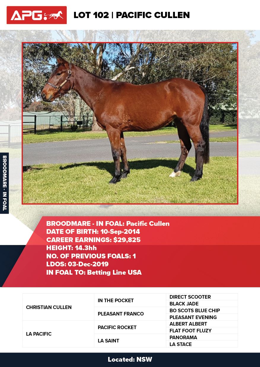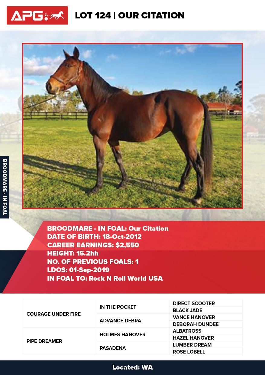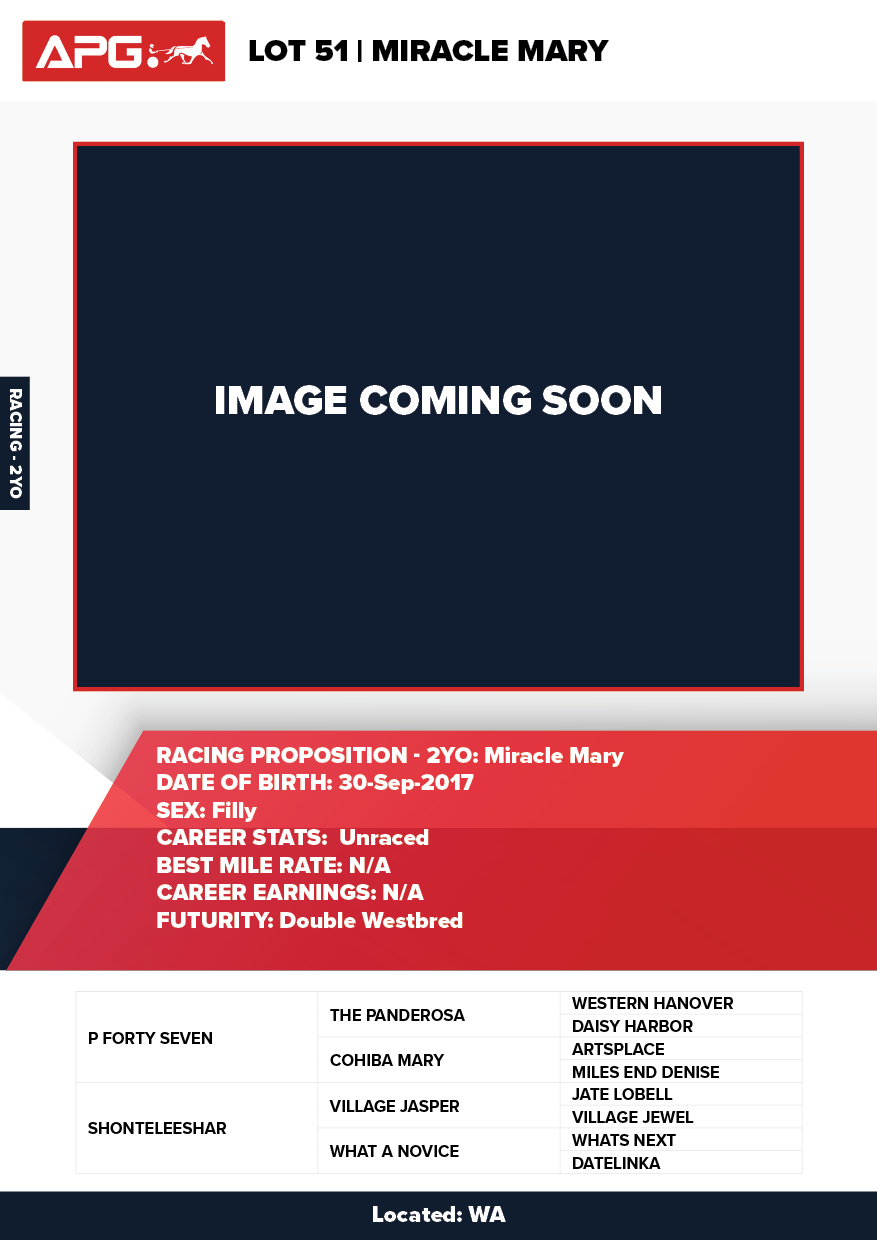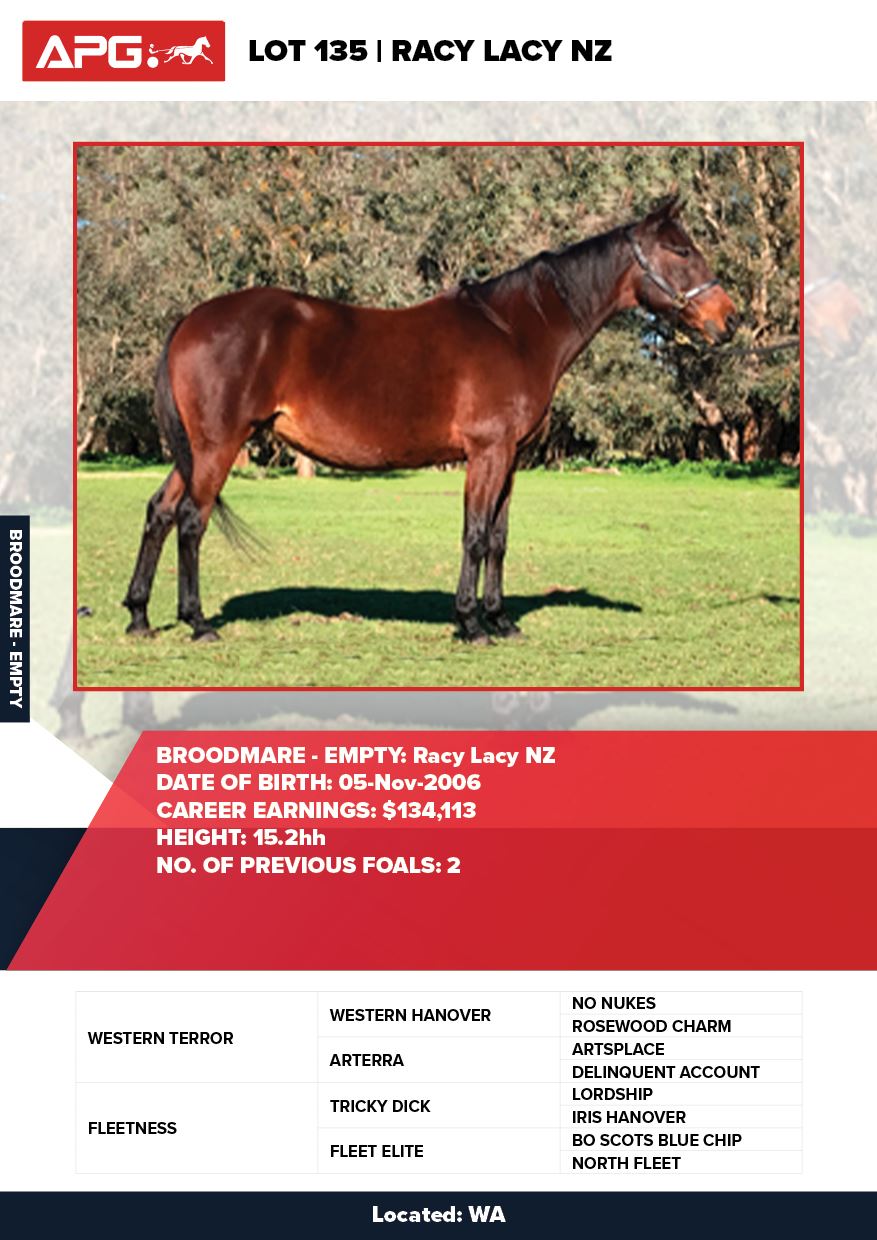| Mare | Lady Mulan | Pacific Fella USA | Mulan | Allwood Stud | WA |