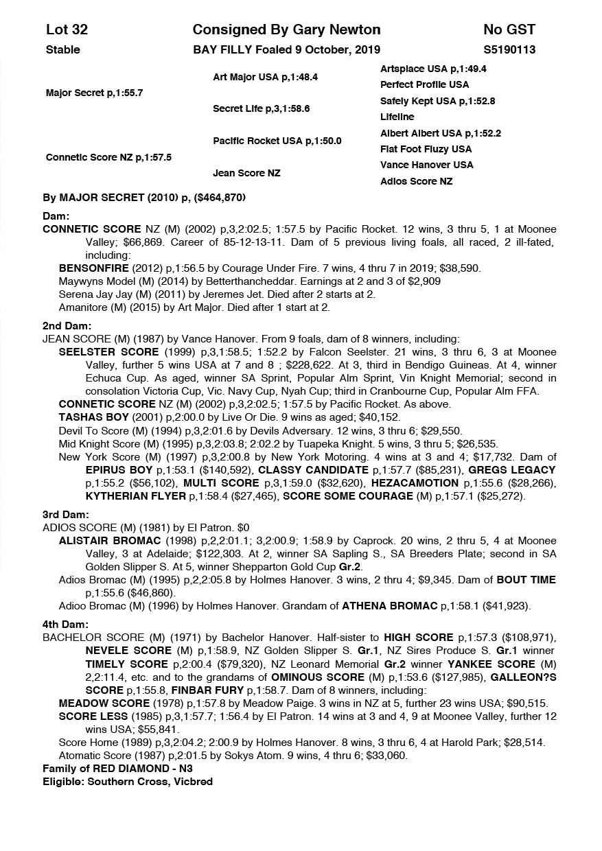 | Major Secret | Connetic Score NZ | Gary Newton | SA | John Craig | $2,750 |