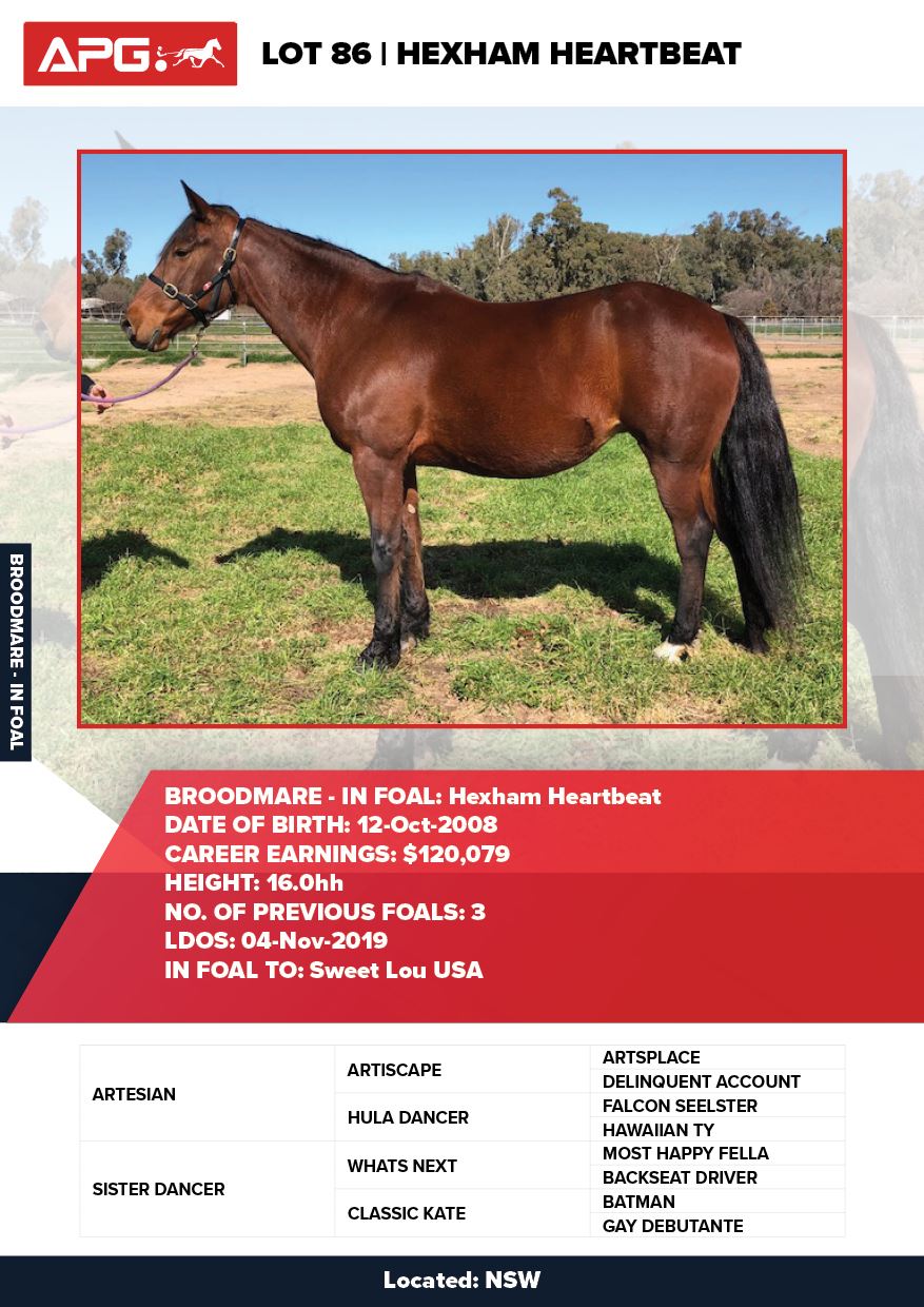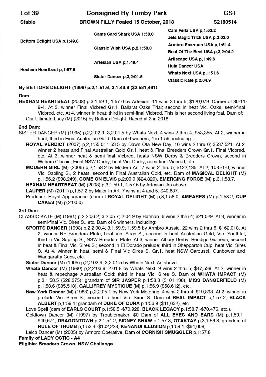 | Filly | Our Ultimate Layla | Bettors Delight USA | Hexham Heartbeat | Tumby Park | NSW |