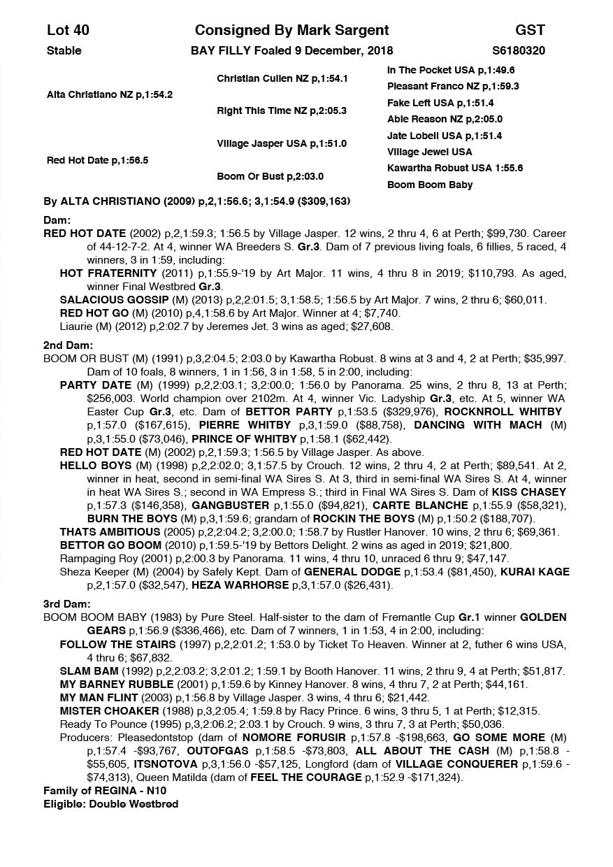 | Alta Christiano NZ | Red Hot Date | Mark Sargent | WA | Michael Young | $13,000 |