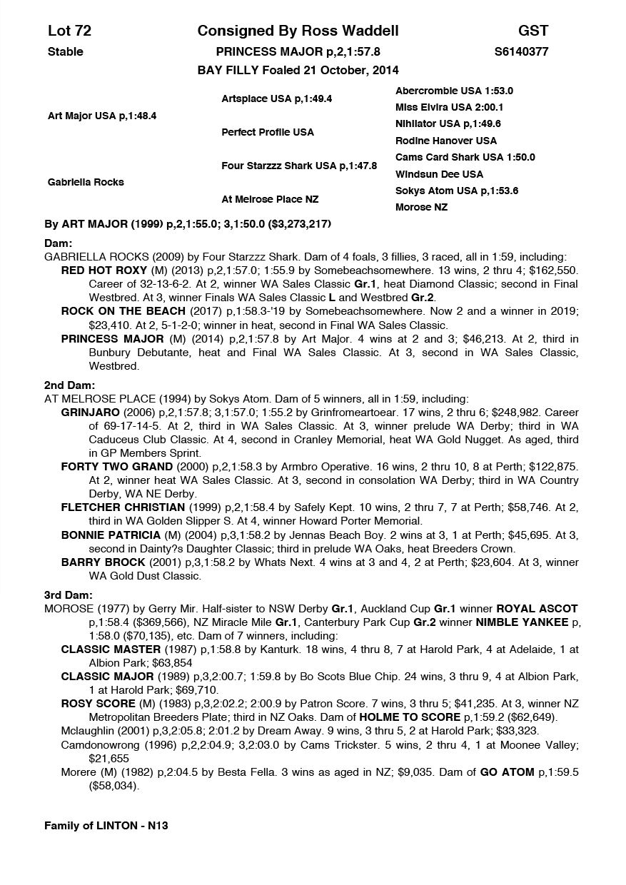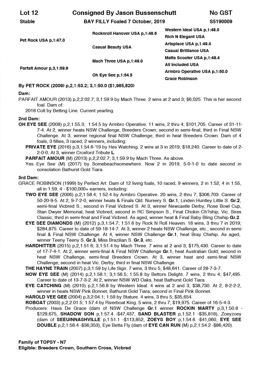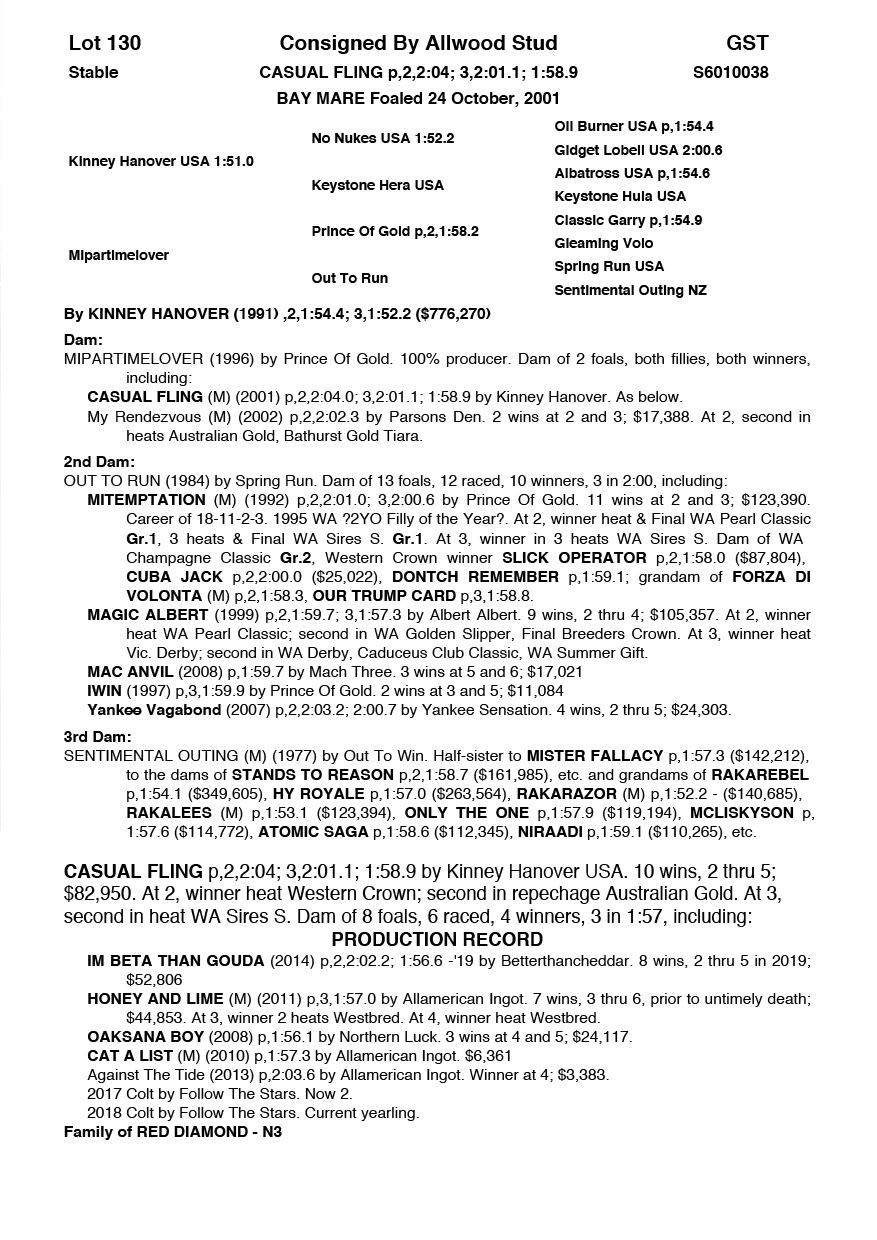 | Mare | Kayteeoh Denario NZ | Rocknroll Hanover USA | Goodtogo Denario (NZ) | Tommy Sheehy | WA | Danielle Helbers | $1,000 |