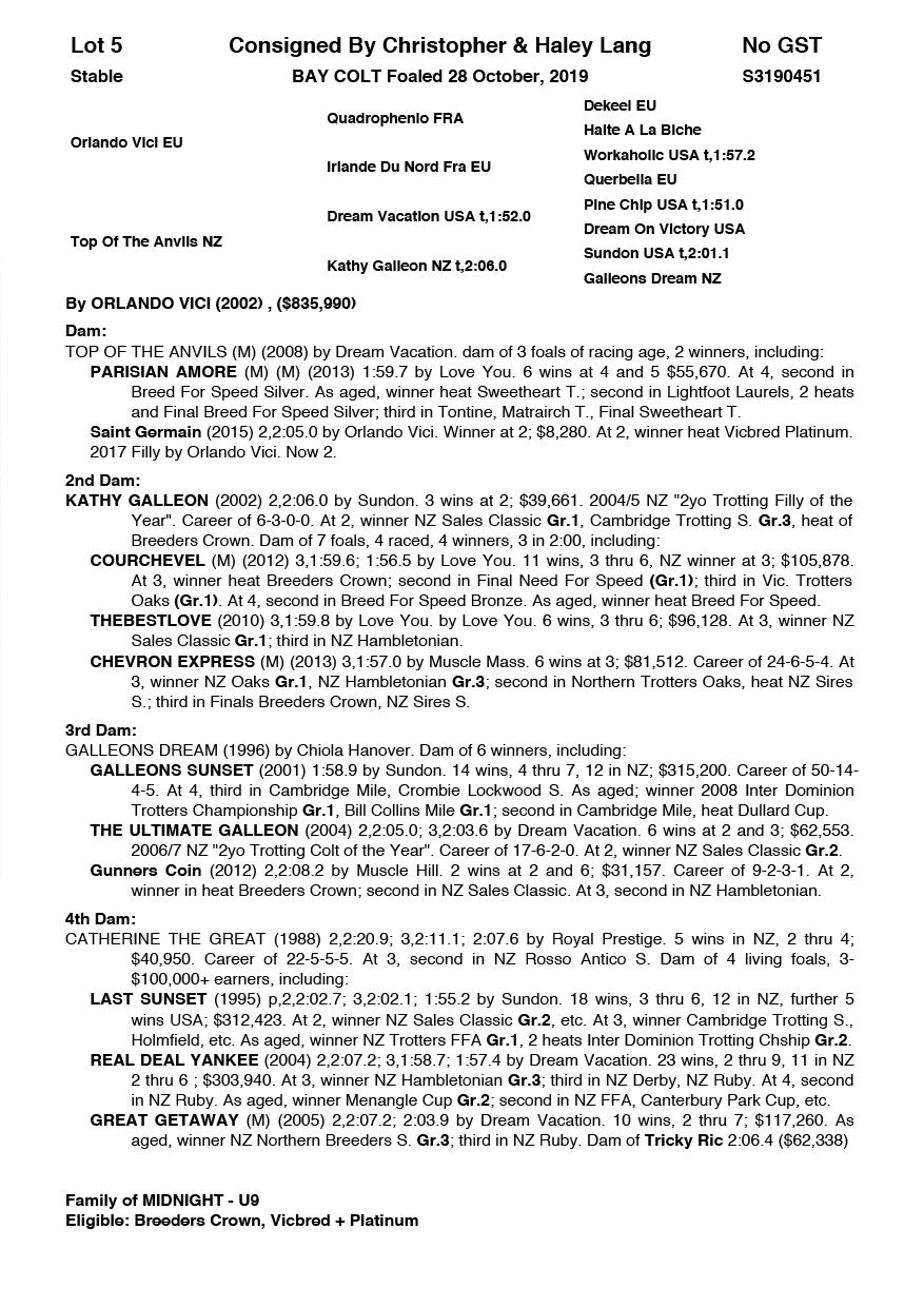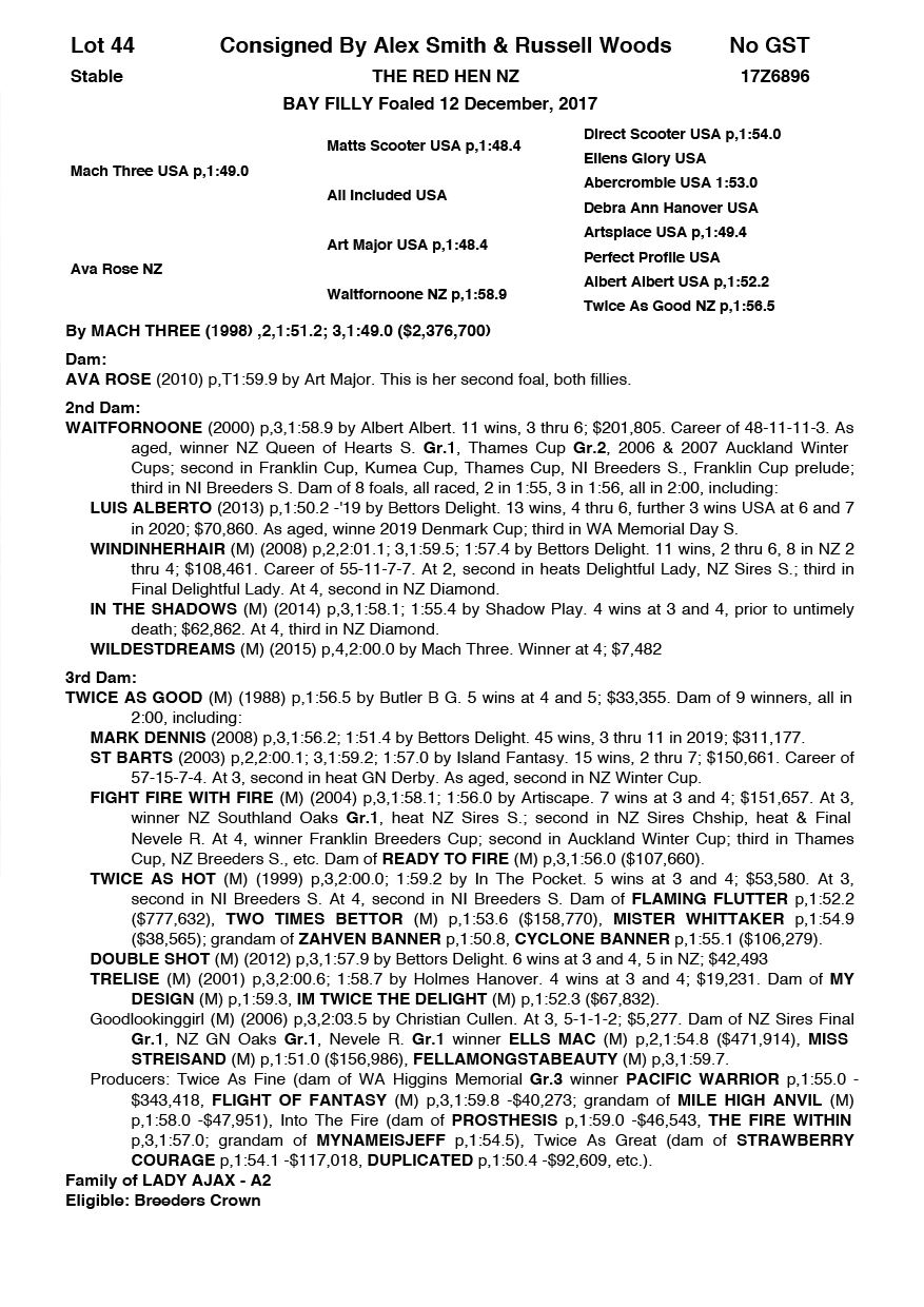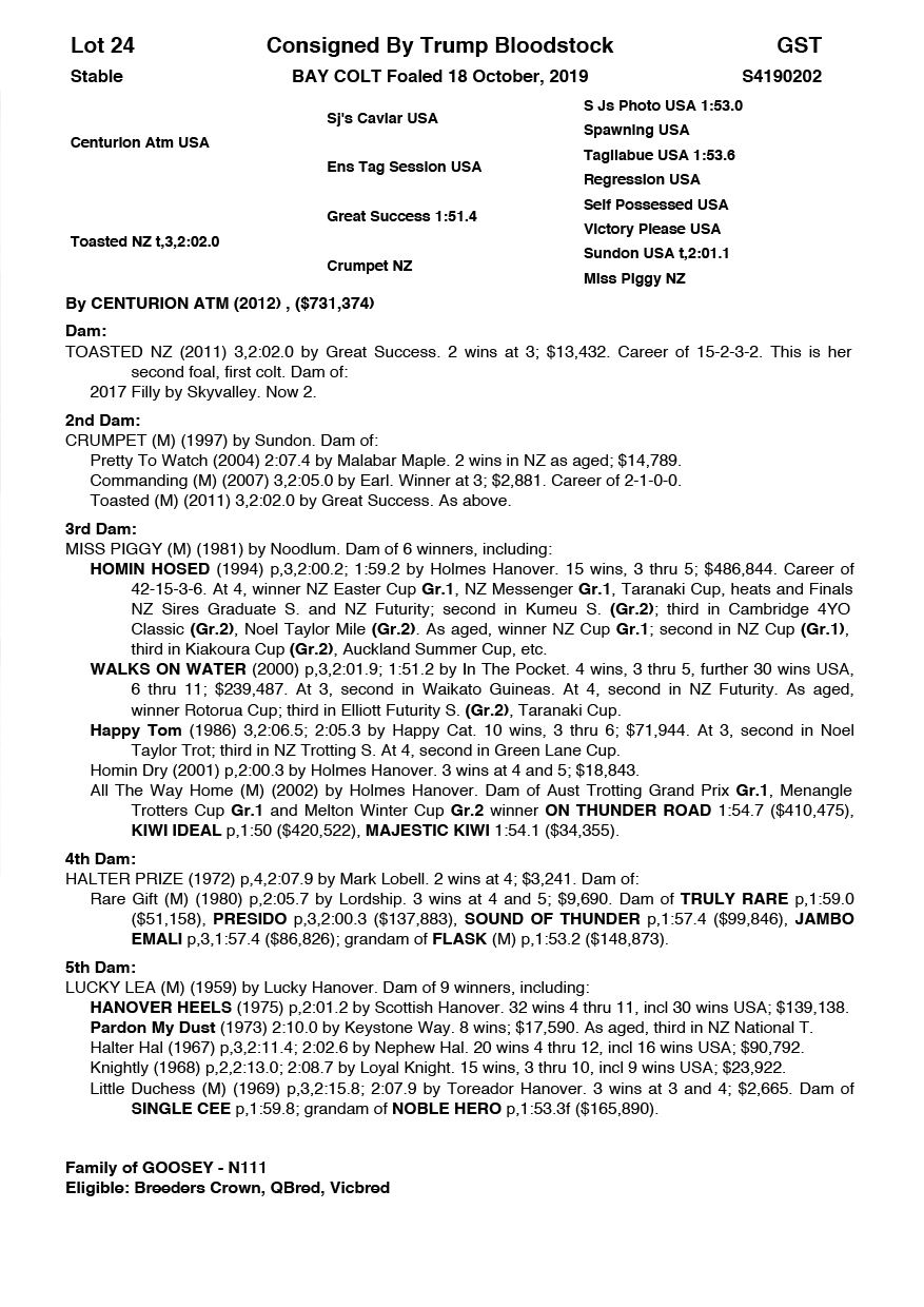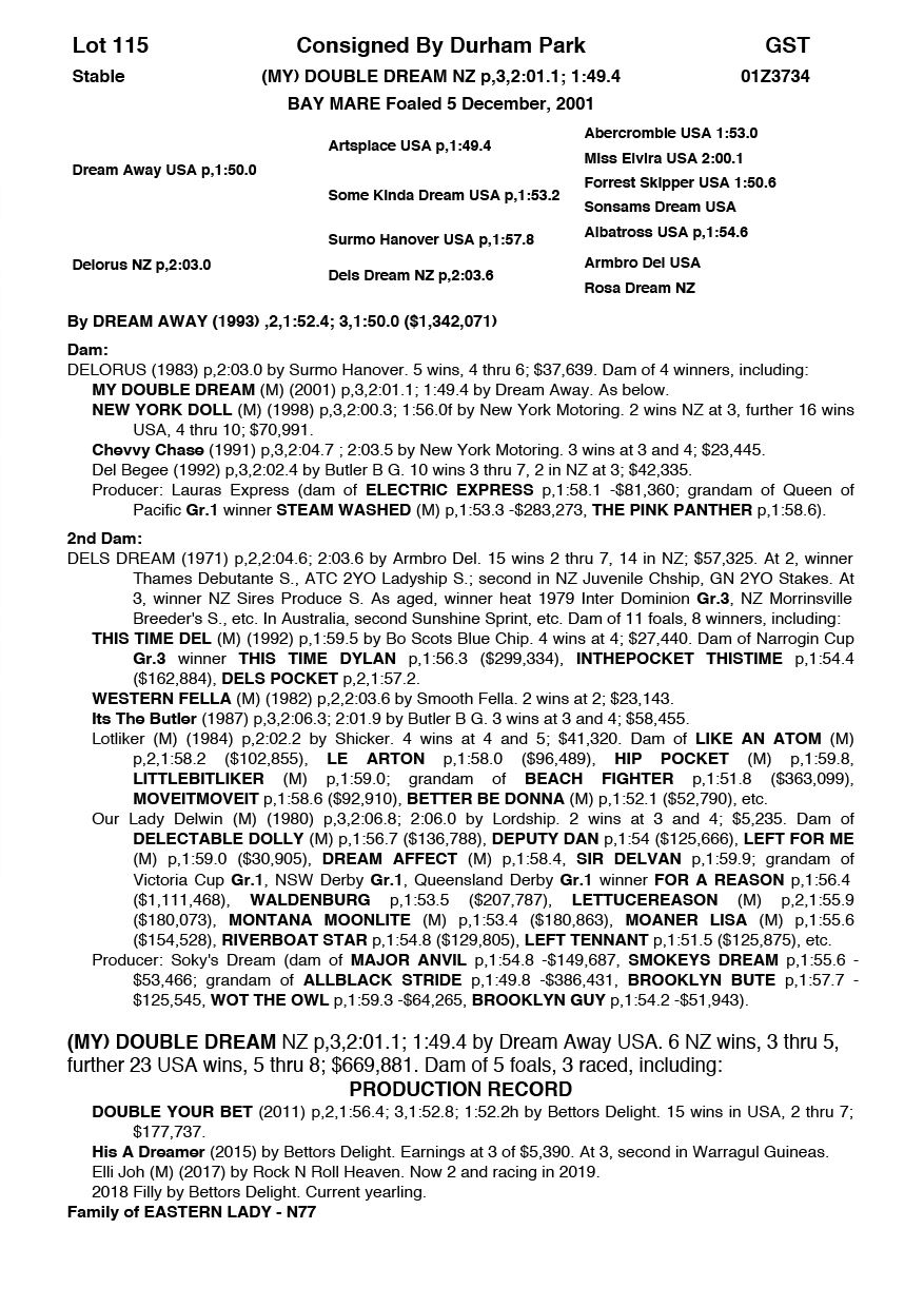 | Mare | Kayteeoh Denario NZ | Rocknroll Hanover USA | Goodtogo Denario (NZ) | Tommy Sheehy | WA | Danielle Helbers | $1,000 |