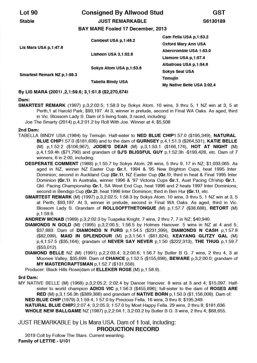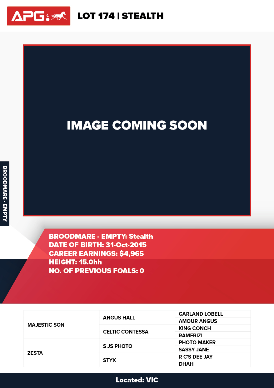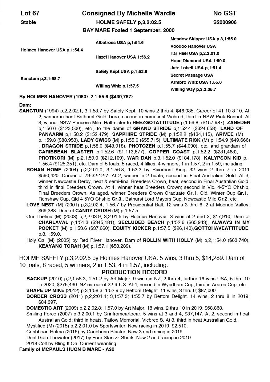| Mare | Stealth | Majestic Son CA | Zesta | Debbie Jack | VIC | Justin Baker | $3,500 |
