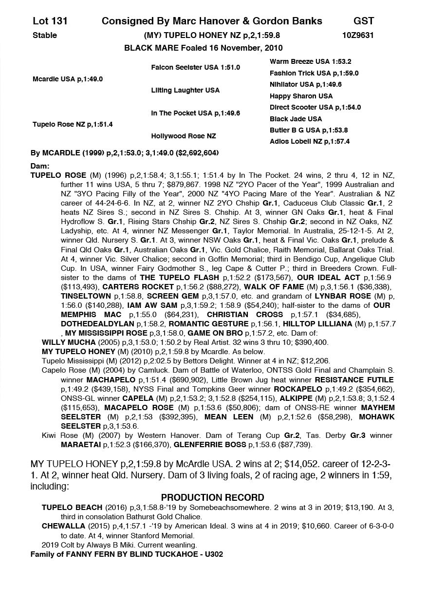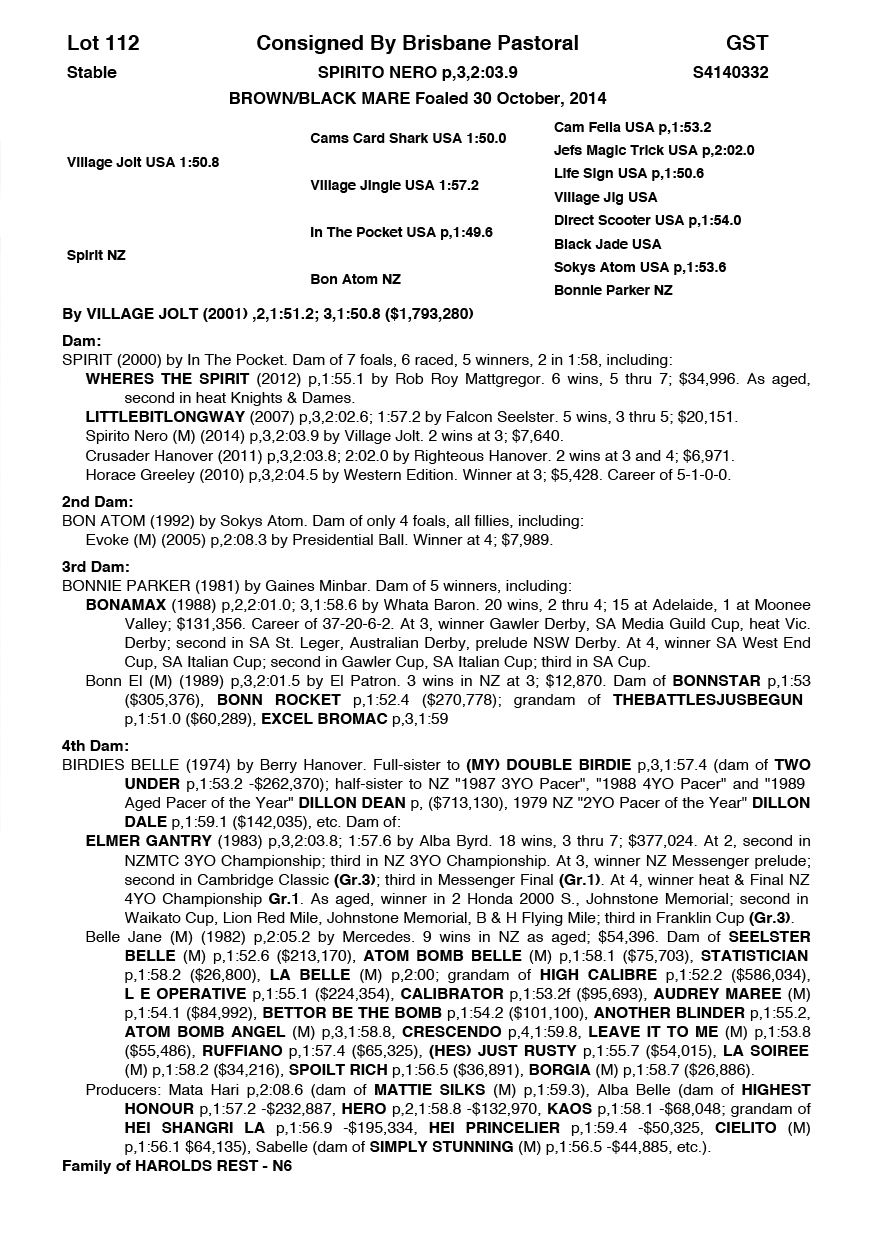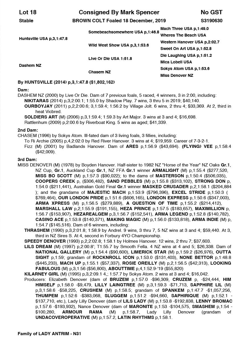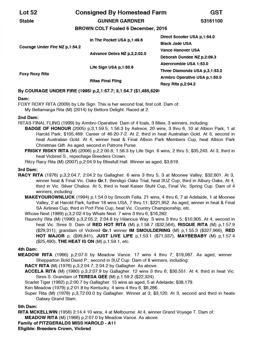 | Mare | Stealth | Majestic Son CA | Zesta | Debbie Jack | VIC | Justin Baker | $3,500 |