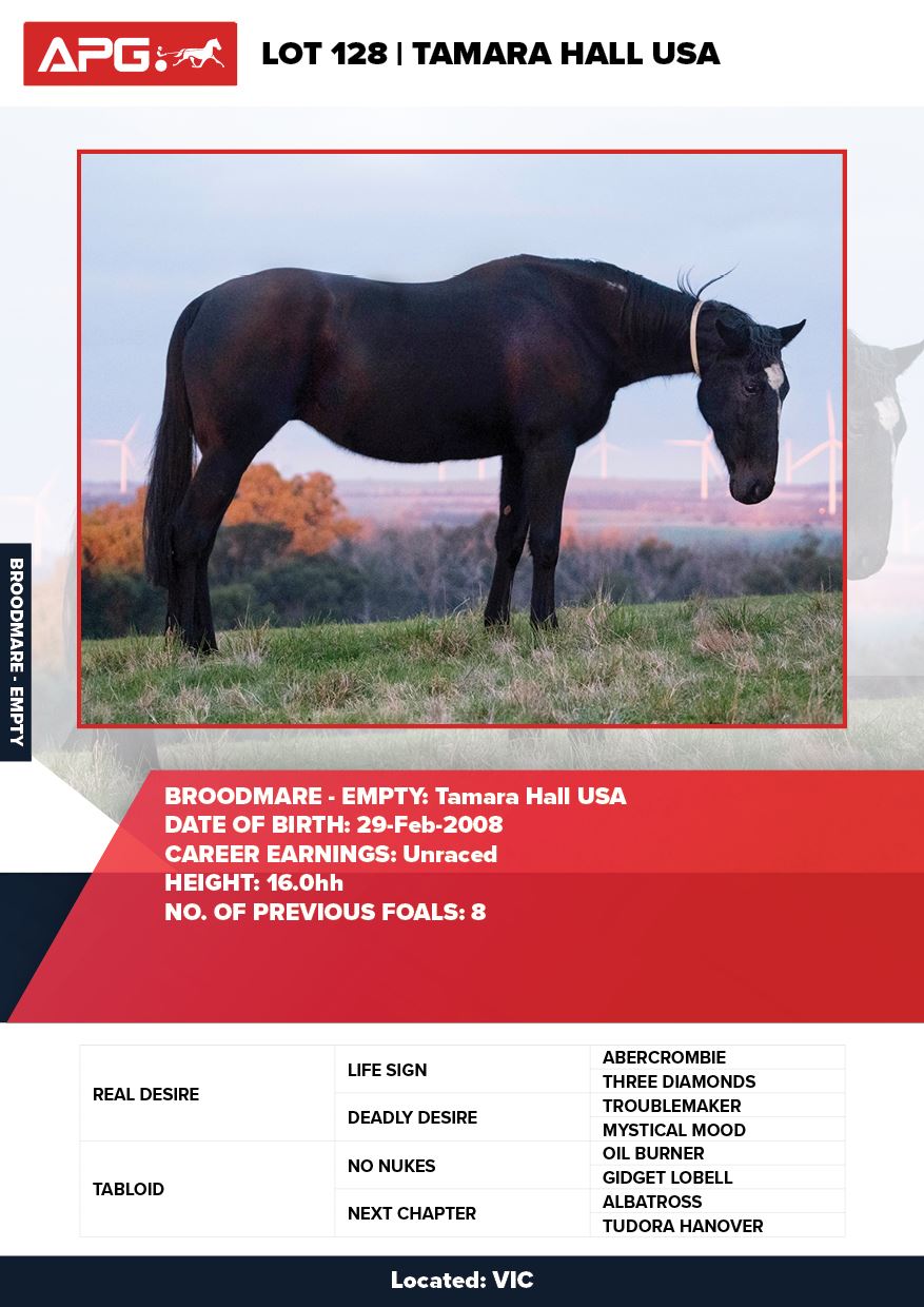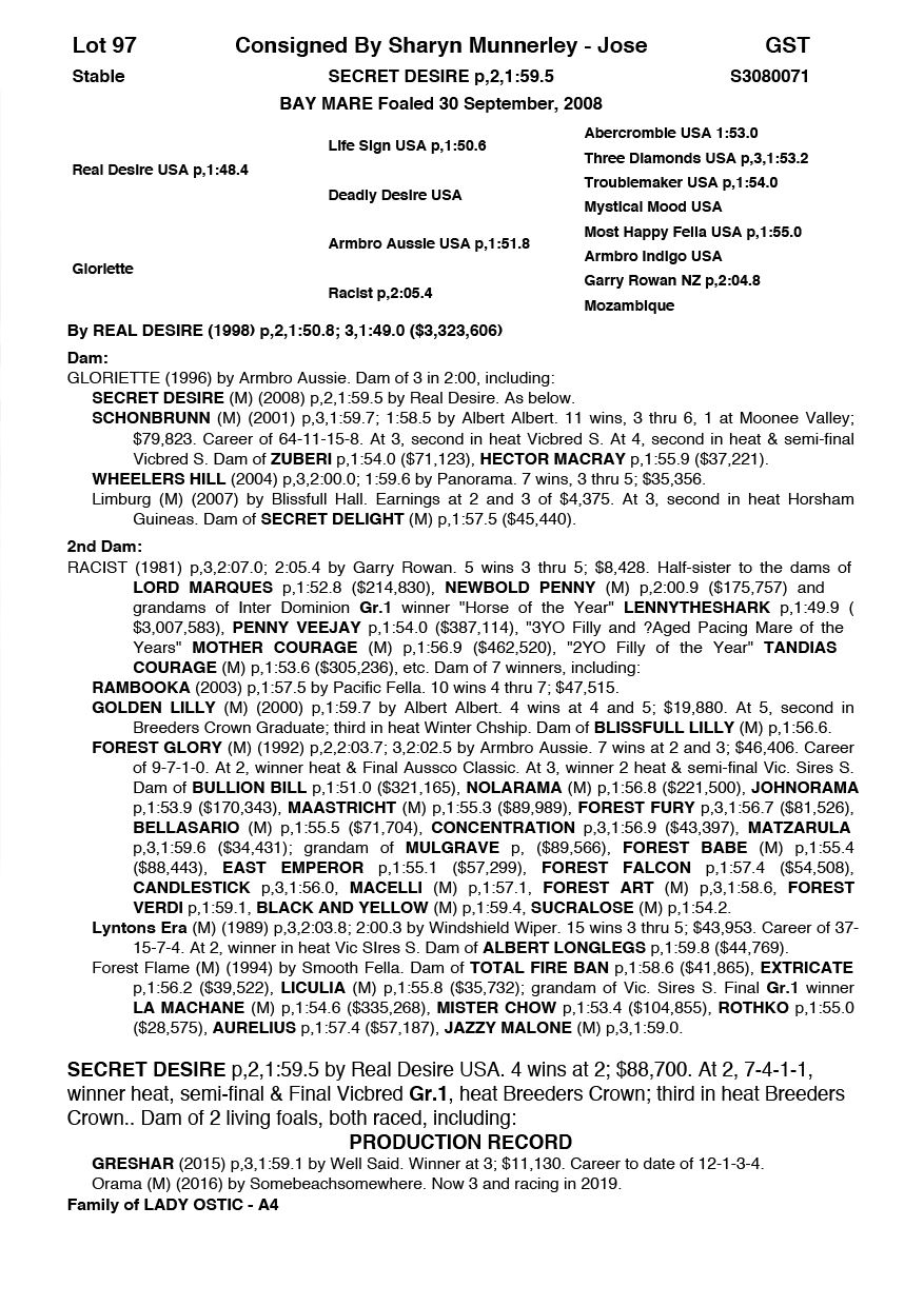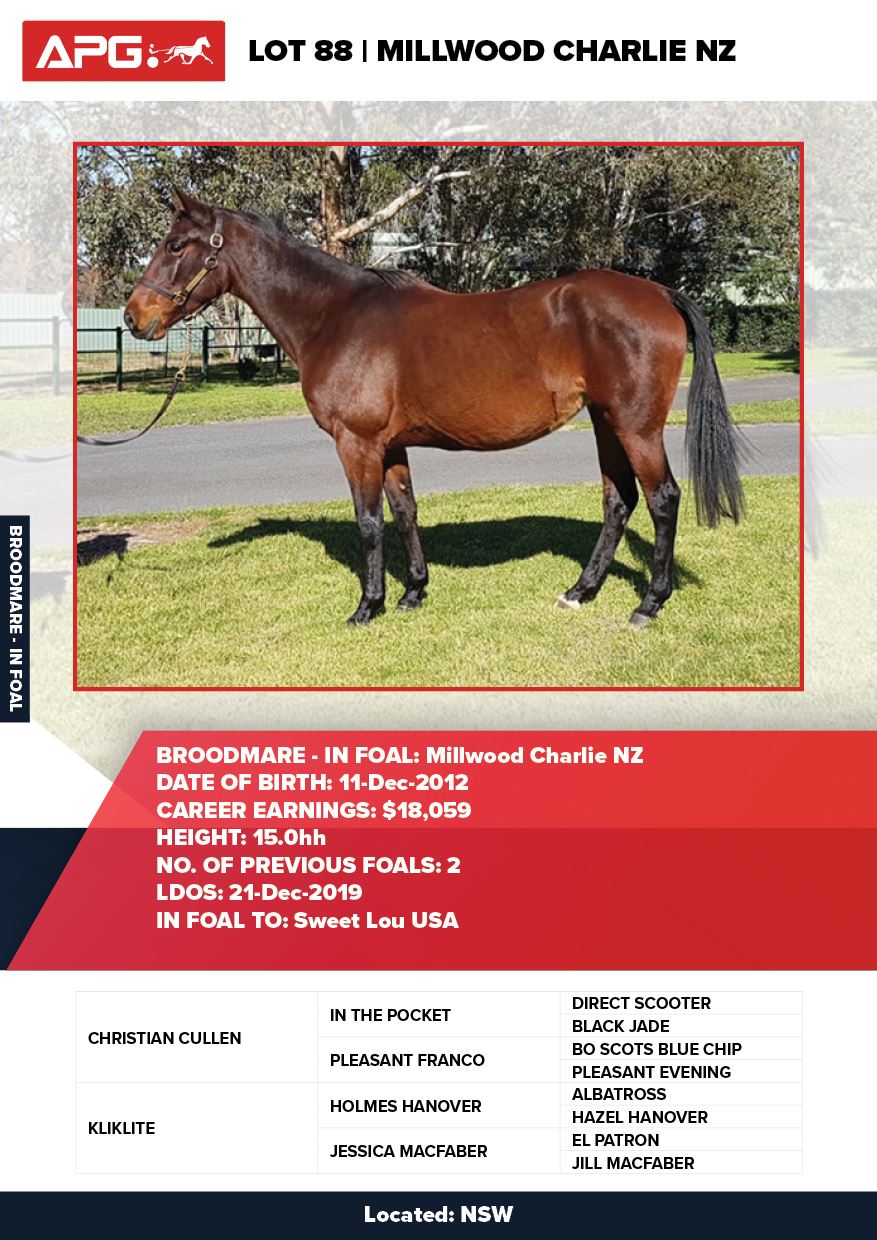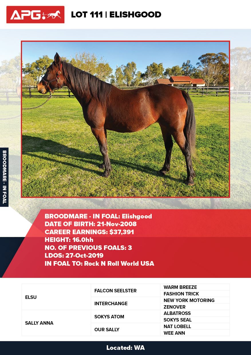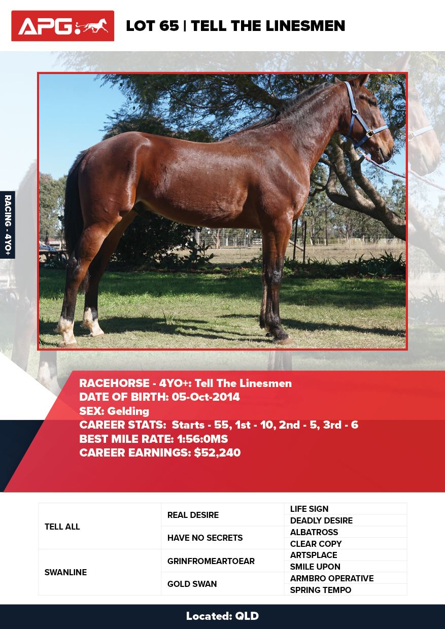 | Mare | Sparkling Desire | Tell All USA | Good Time Whitby | Allwood Stud | WA |