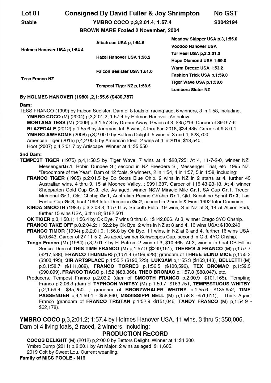 | Mare | Pembrook Caesar NZ | Julius Caesar USA | Northern Franco NZ | DNR Properties | VIC |