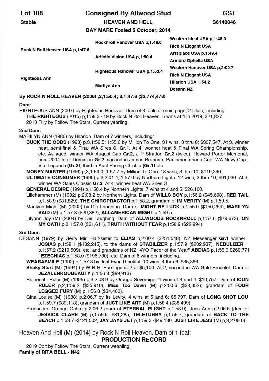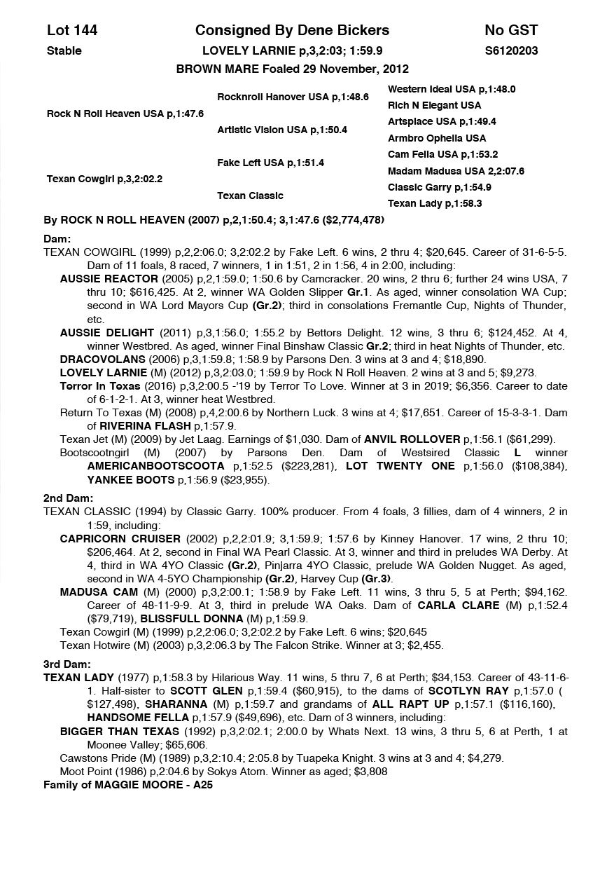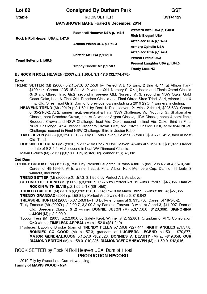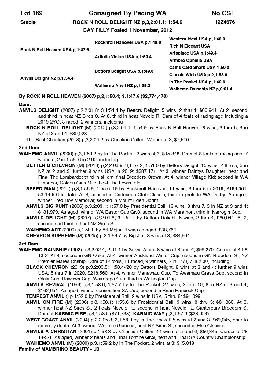 | Mare | Rock N Roll Delight NZ | Rock N Roll Heaven USA | Anvils Delight (NZ) | Pacing WA | WA |