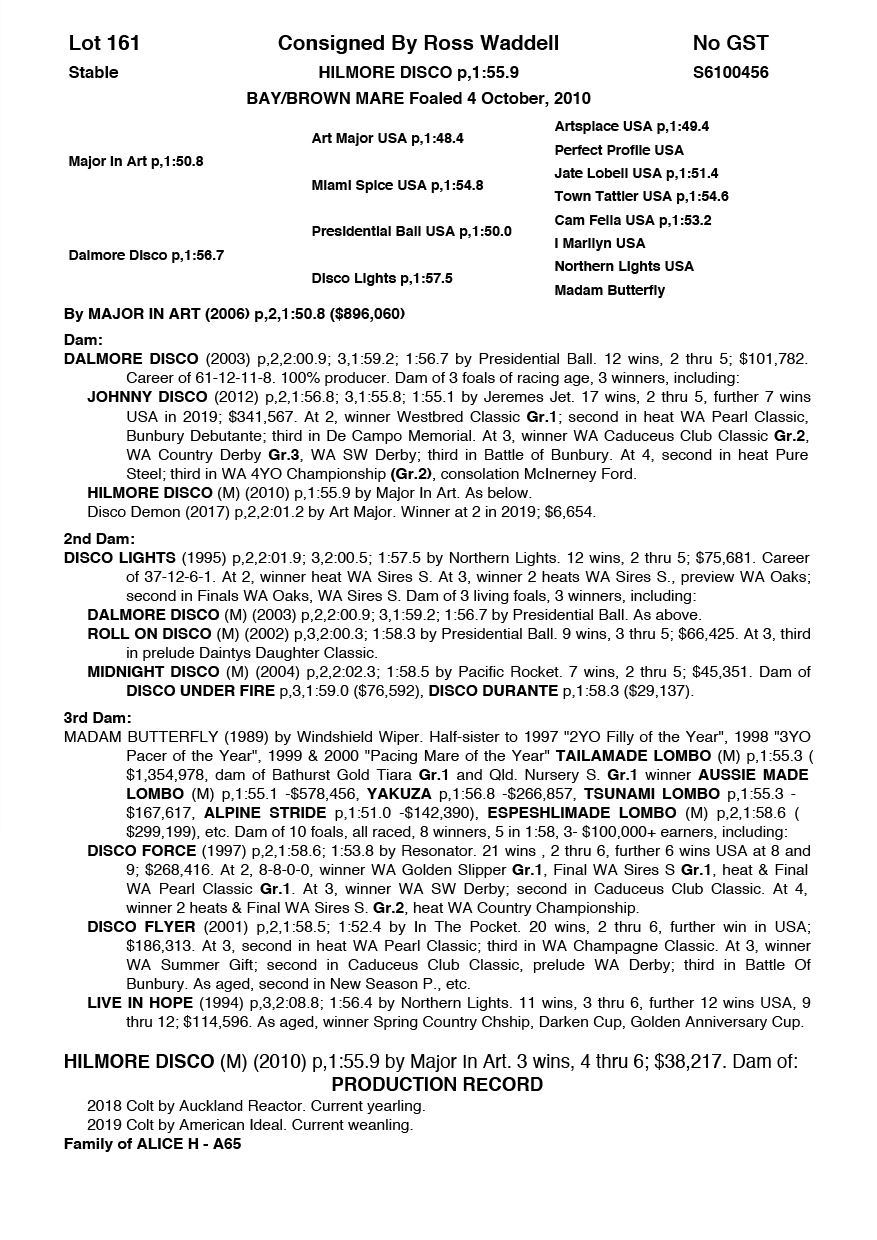 | Mare | Hilmore Disco | Major In Art USA | Dalmore Disco | Ross Waddell | WA | Bill Hayes | $500 |