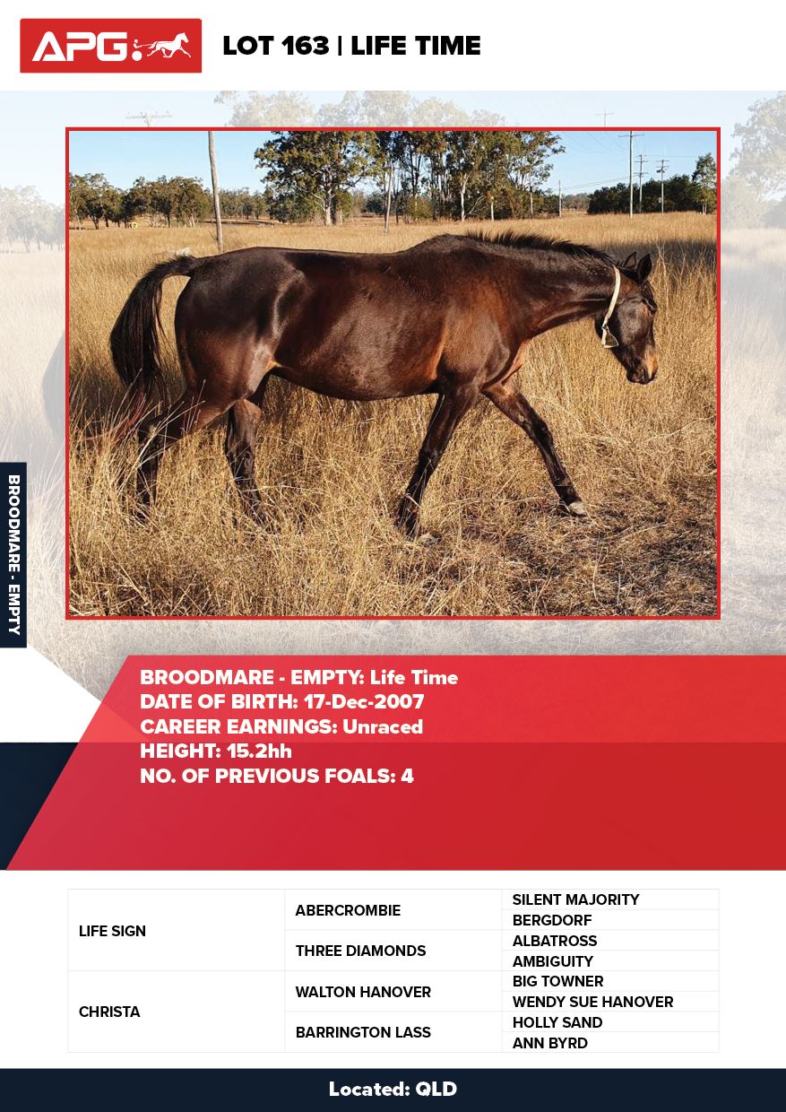 | Mare | Life Time | Life Sign USA | Christa | Raboki Pty Ltd | QLD |